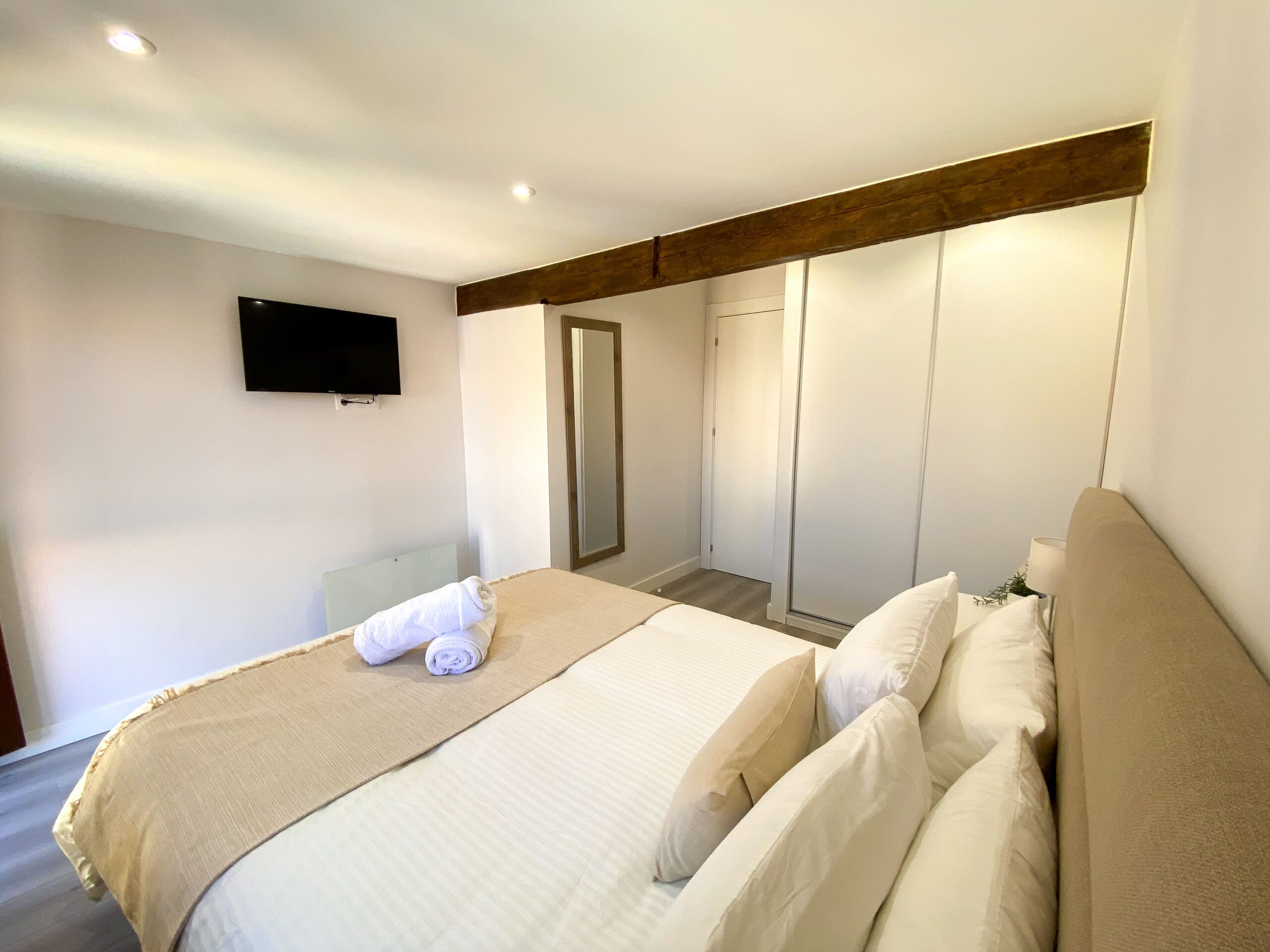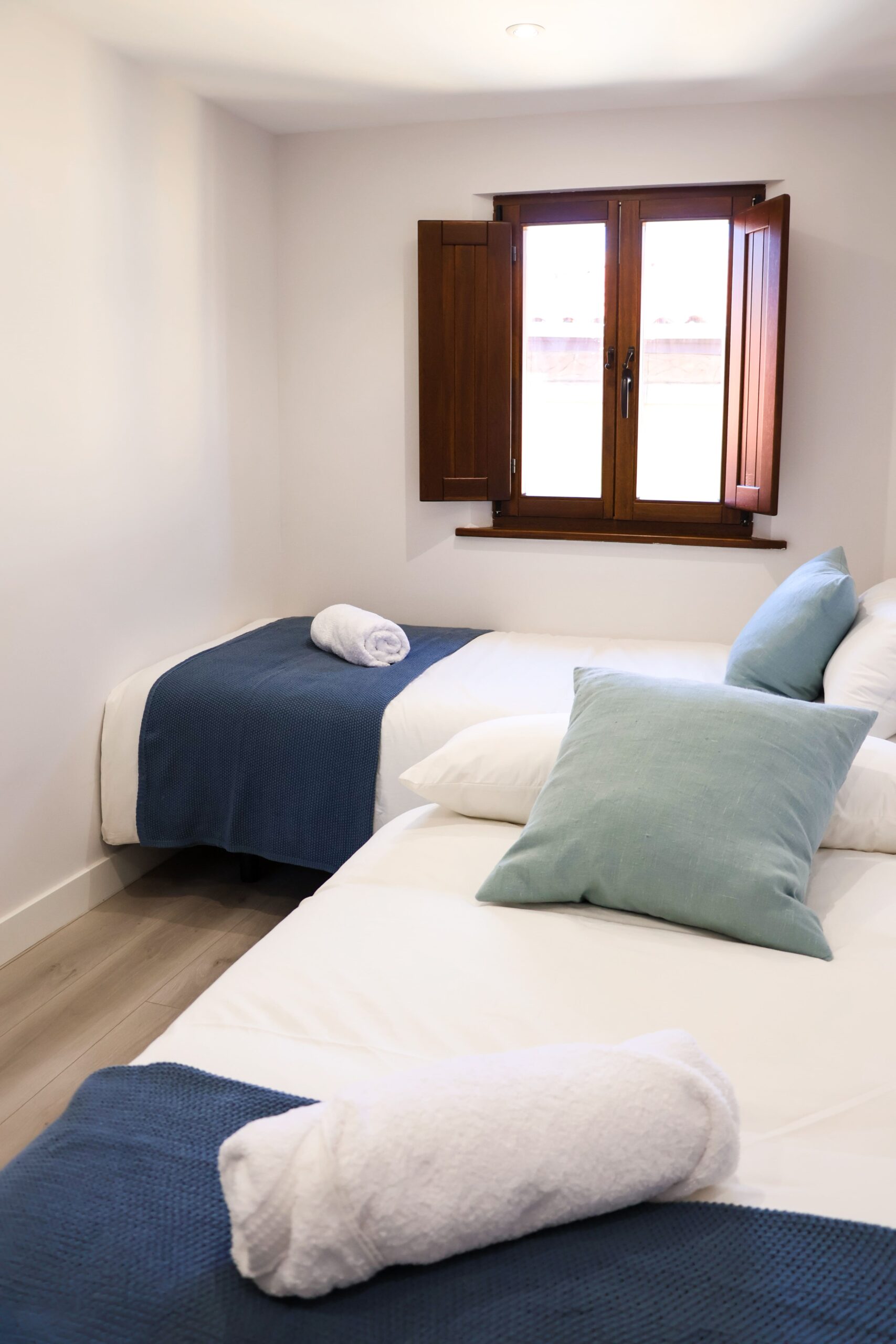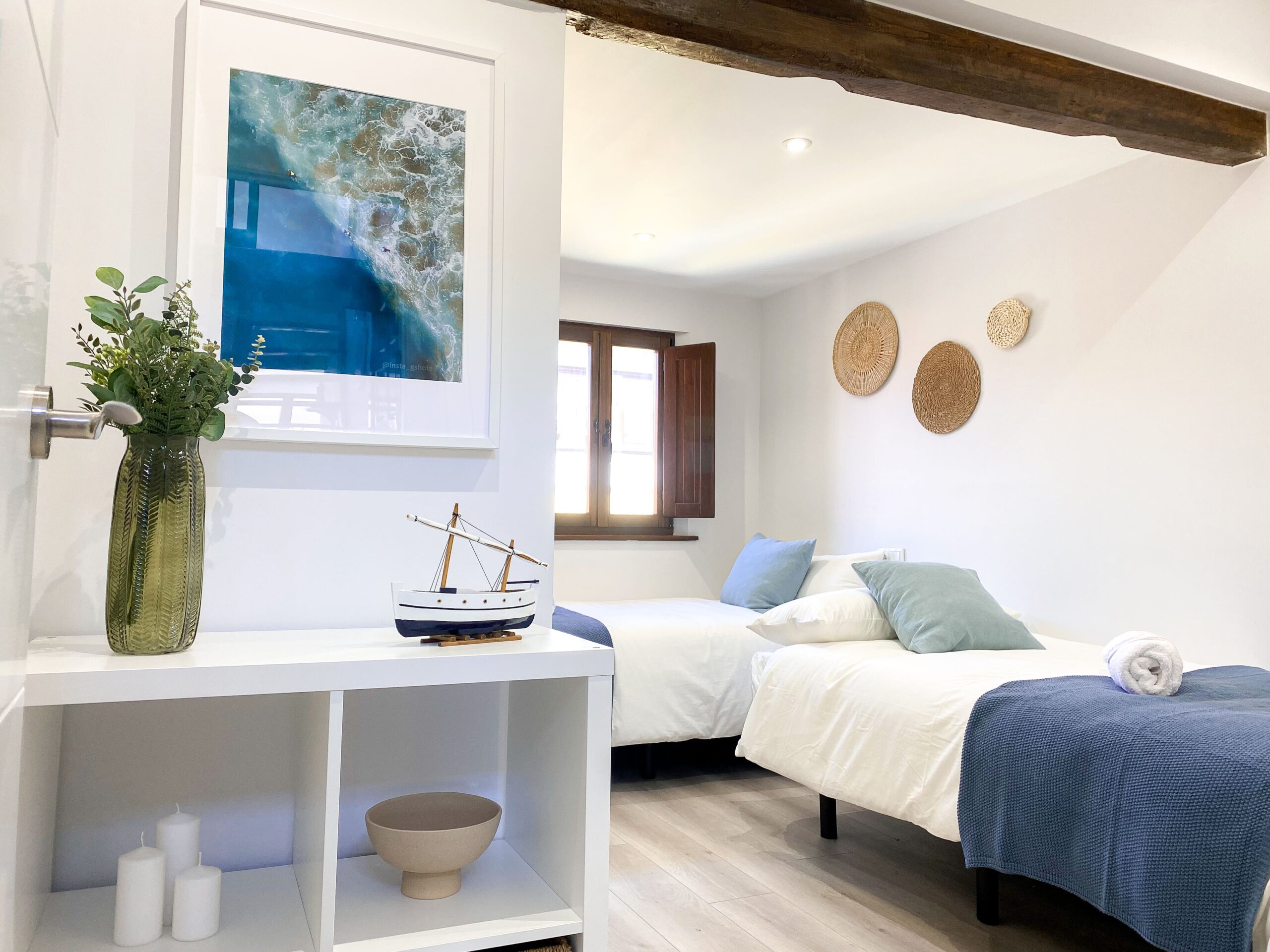 El apartamento cuenta con dos dormitorios —uno con cama de matrimonio y otro con dos camas individuales—, todos equipados con ropa de cama premium y amplios armarios empotrados. El salón, espacioso y lleno de luz natural, se integra con una cocina completamente equipada con electrodomésticos de alta gama, perfecta para disfrutar de comidas en familia o entre amigos.