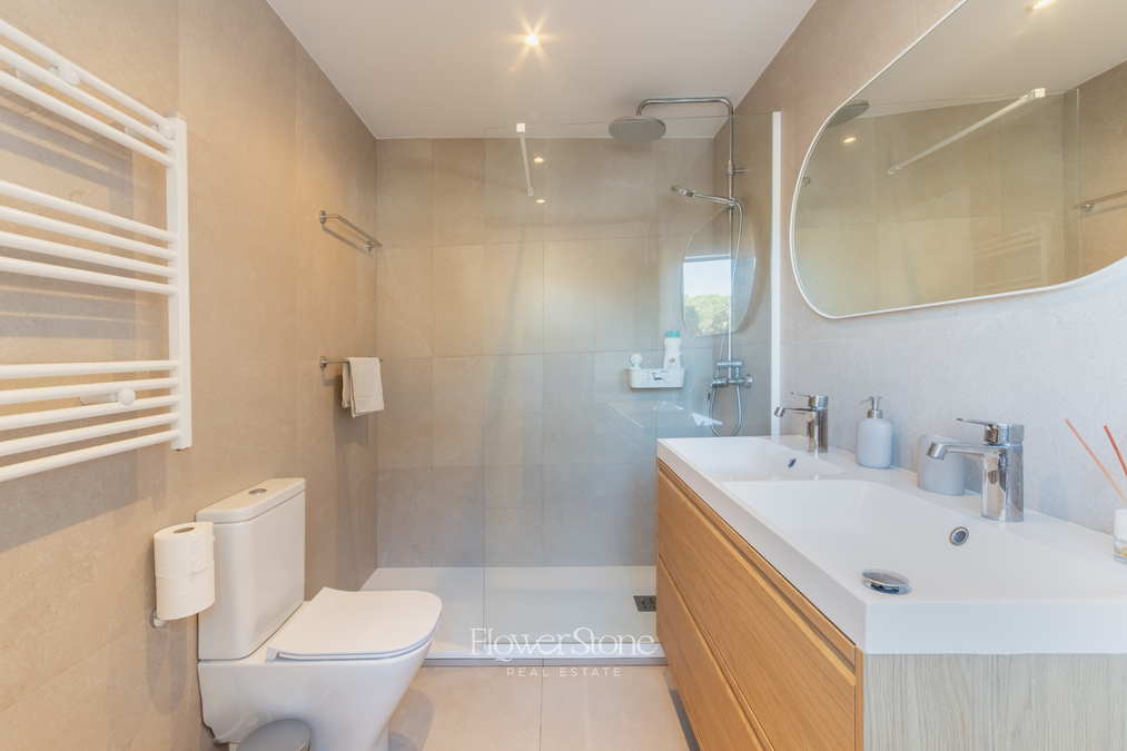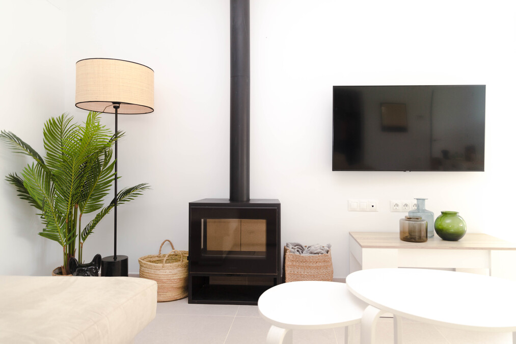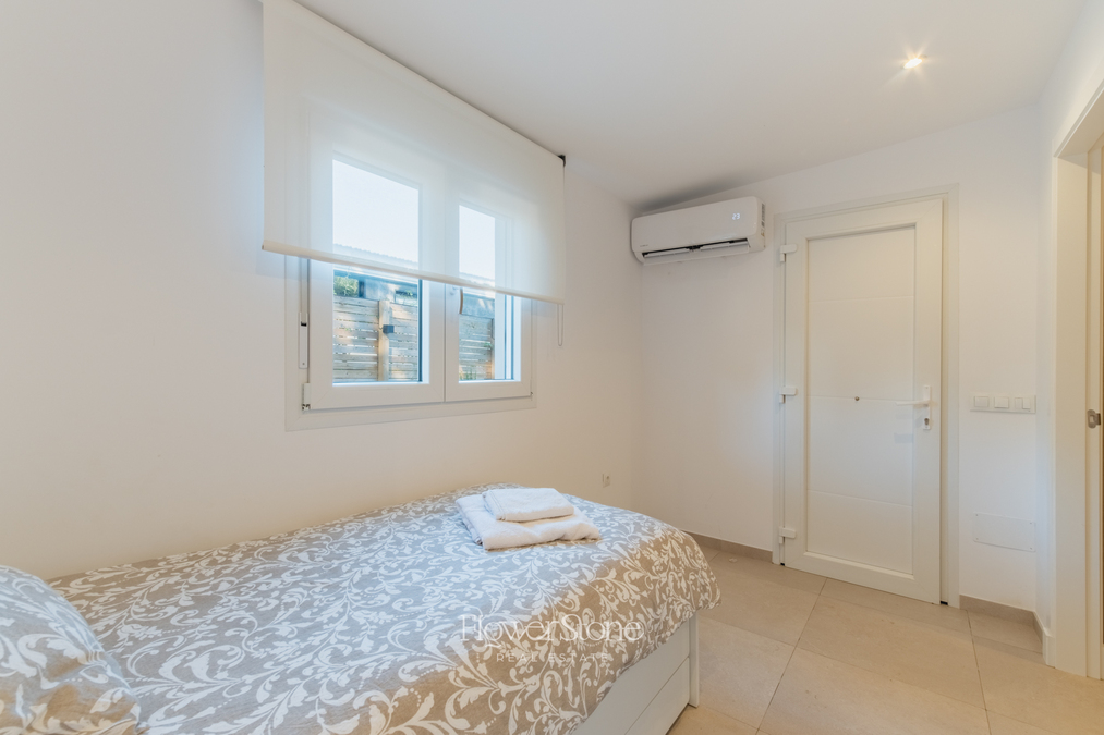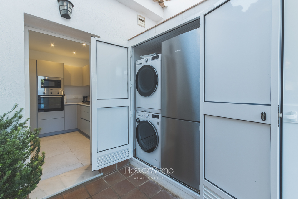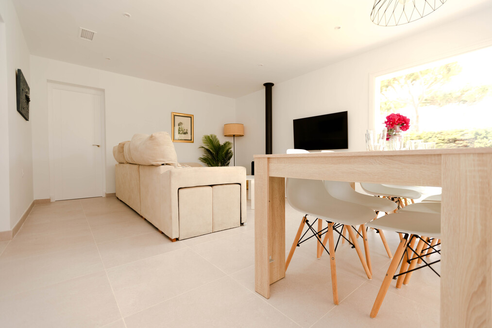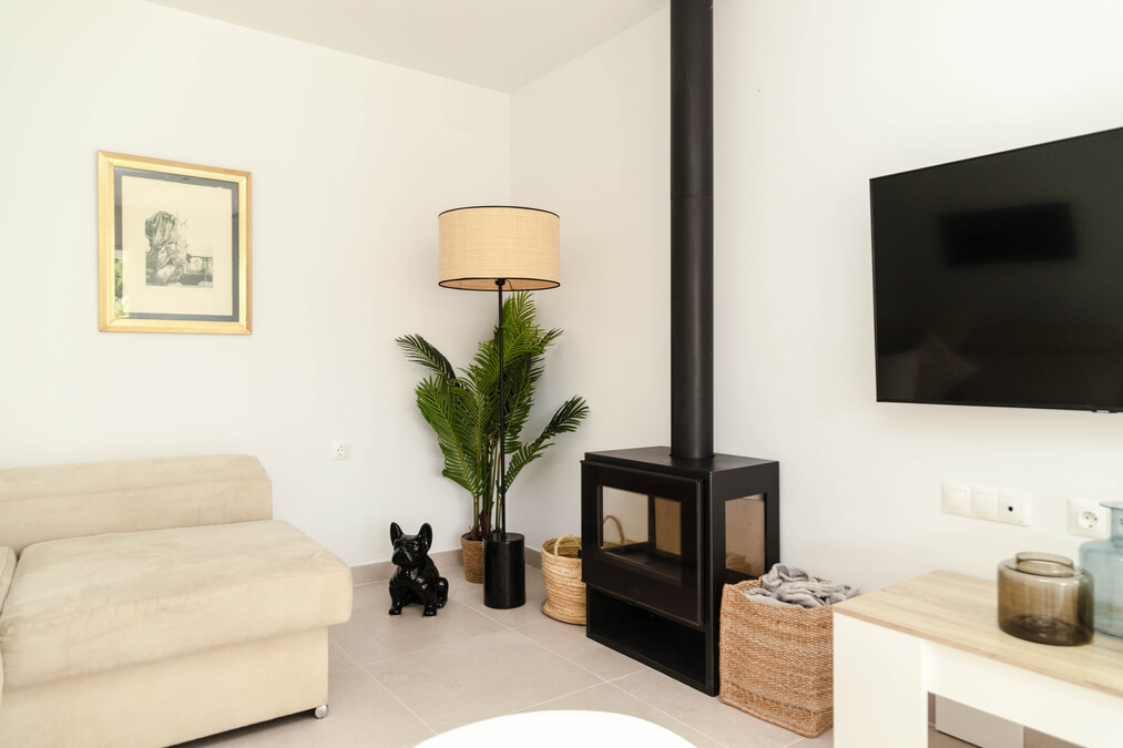 La villa está completamente equipada, incluyendo una cocina abierta al salón, menaje completo de cocina y mesa. Todos los dormitorios cuentan con sábanas y toallas de alta calidad. Los 3 baños son completos y la villa cuenta con aire acondicionado y calefacción para garantizar tu comodidad en cualquier época del año. Además, el salón dispone de una estufa de leña que crea un ambiente acogedor y cálido. También tendrás acceso a wifi en toda la villa.