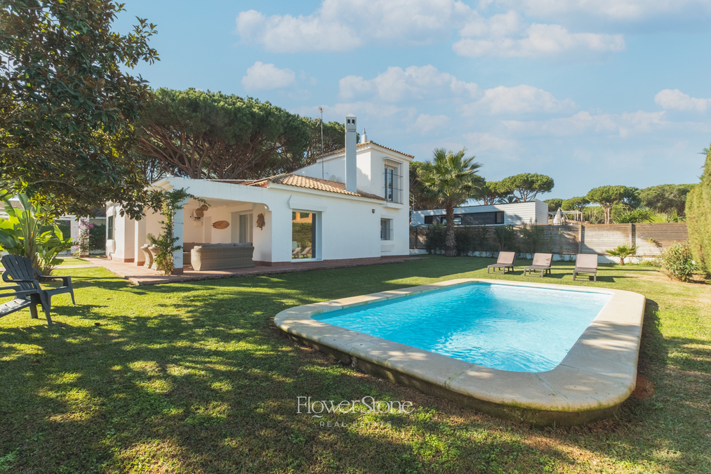 Bienvenido a tu oasis de ensueño en la prestigiosa Urbanización Roche, en Cádiz! Descubre esta maravillosa villa con piscina, un paraíso vacacional que te brindará una experiencia inolvidable en la mejor playa imaginable. Con 200 m2 distribuidos en 2 plantas y una generosa parcela de 900 m², esta luminosa villa te ofrece el espacio y el confort que deseas para tus vacaciones.