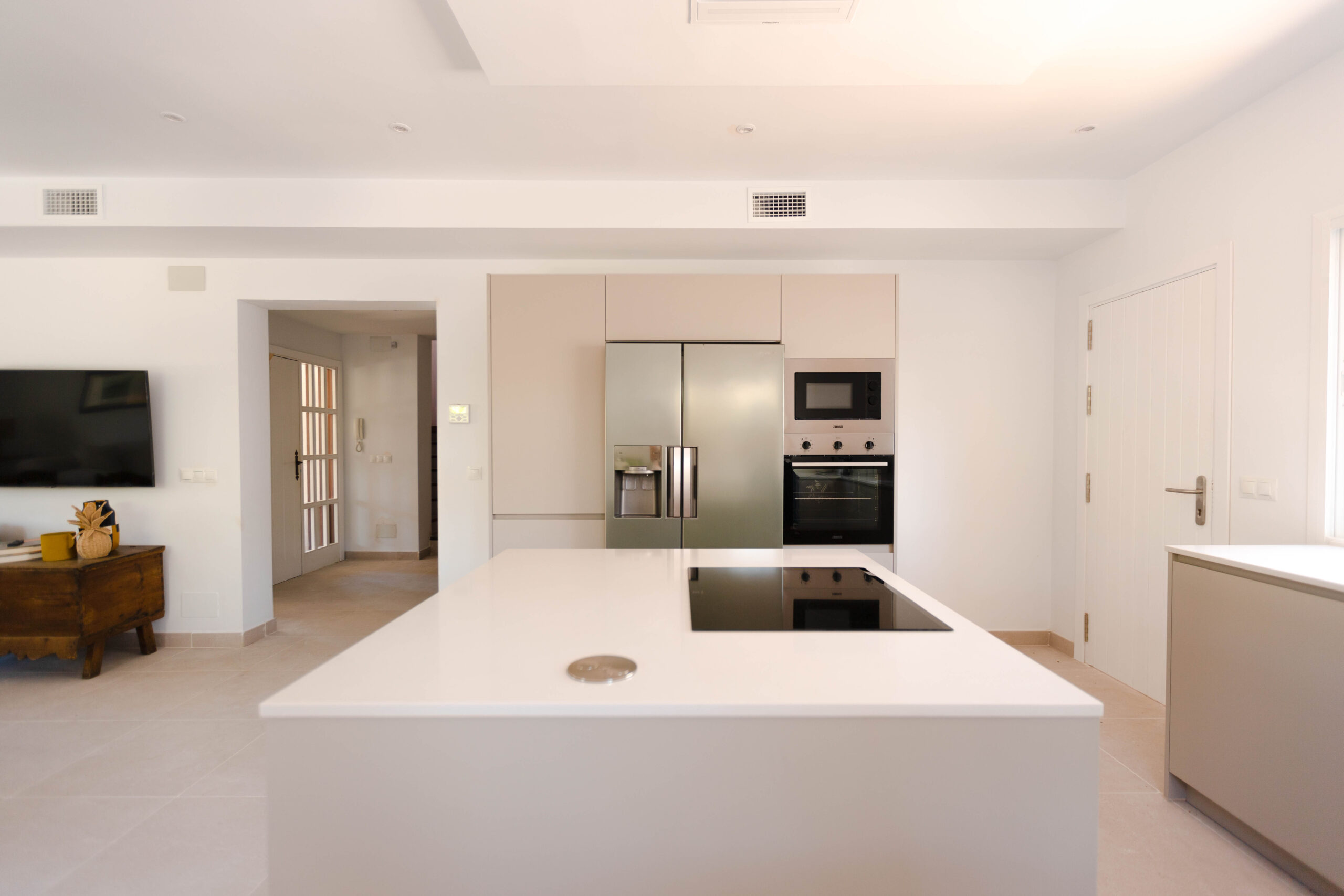 La cocina completa, equipada con una isla y abierta al comedor y al salón principal, es ideal para preparar deliciosas comidas y disfrutar de momentos especiales con tus seres queridos. El jardín cuenta con una zona de barbacoa de obra, perfecta para disfrutar de comidas al aire libre. Además, el porche con muebles de mimbre y la zona de la piscina con hamacas te invitan a relajarte bajo el sol andaluz.