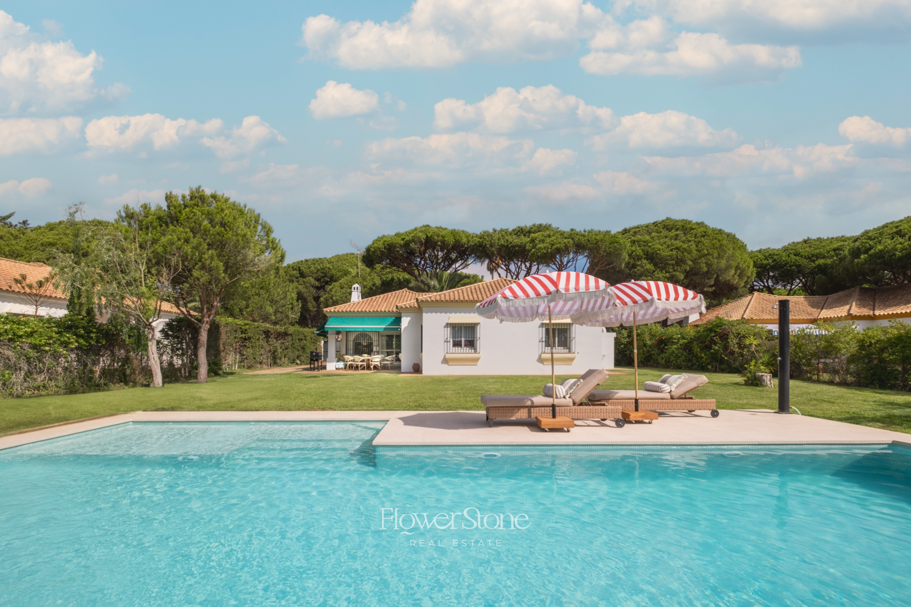 Descubre la magia de la Costa de la Luz en Villa Escocia, una preciosa casa de vacaciones ubicada en la exclusiva urbanización de Roche, en Conil de la Frontera (Cádiz). Rodeada de pinares y a solo cinco minutos a pie de las playas y calas de Roche, esta villa ofrece la combinación perfecta de confort, naturaleza y mar.