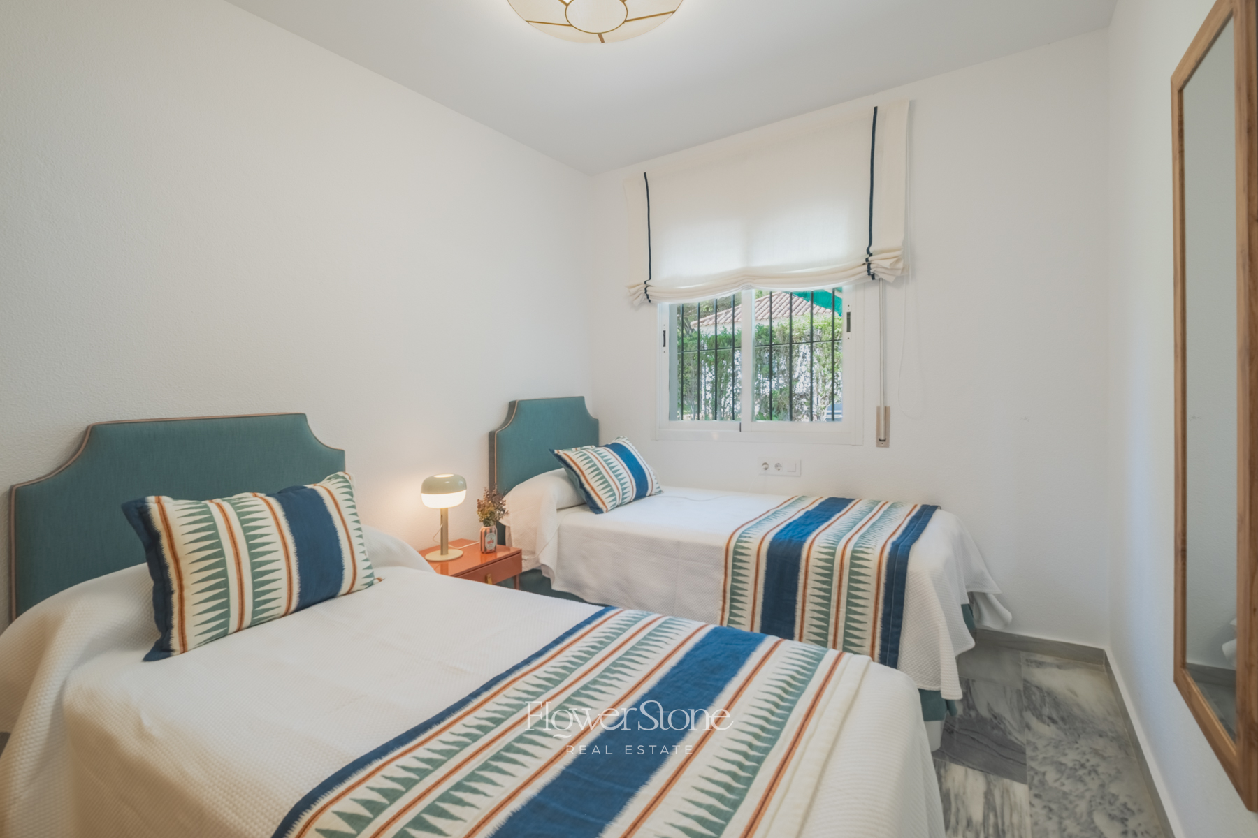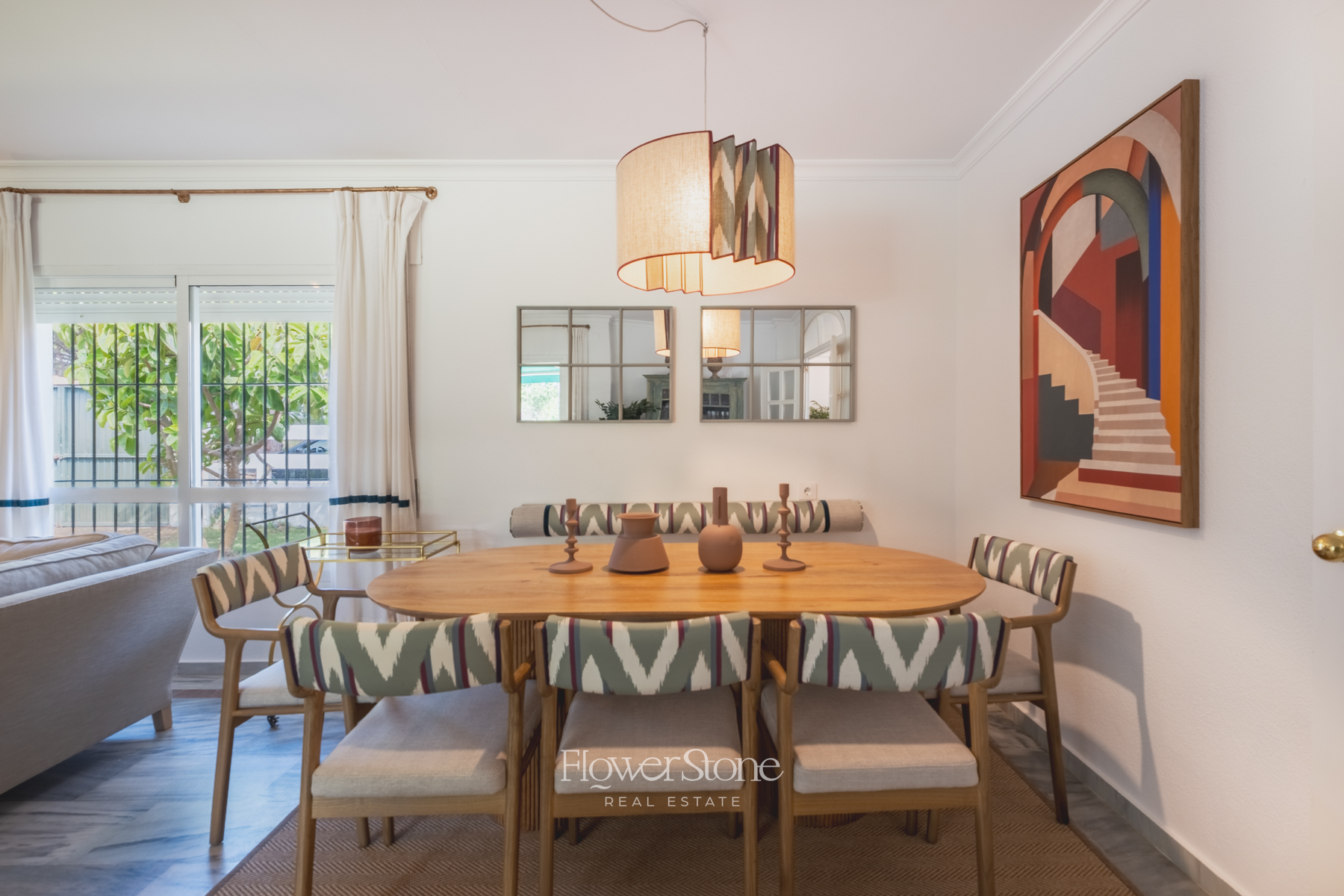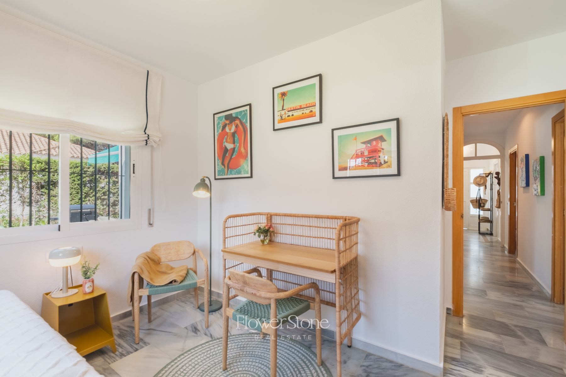 La propiedad, de una sola planta, está diseñada para alojar hasta 8 personas en sus 4 dormitorios luminosos y 2 baños completos (uno en suite). El salón comedor, amplio y acogedor, conecta con una cocina totalmente equipada, ideal para disfrutar de largas sobremesas en familia o con amigos.