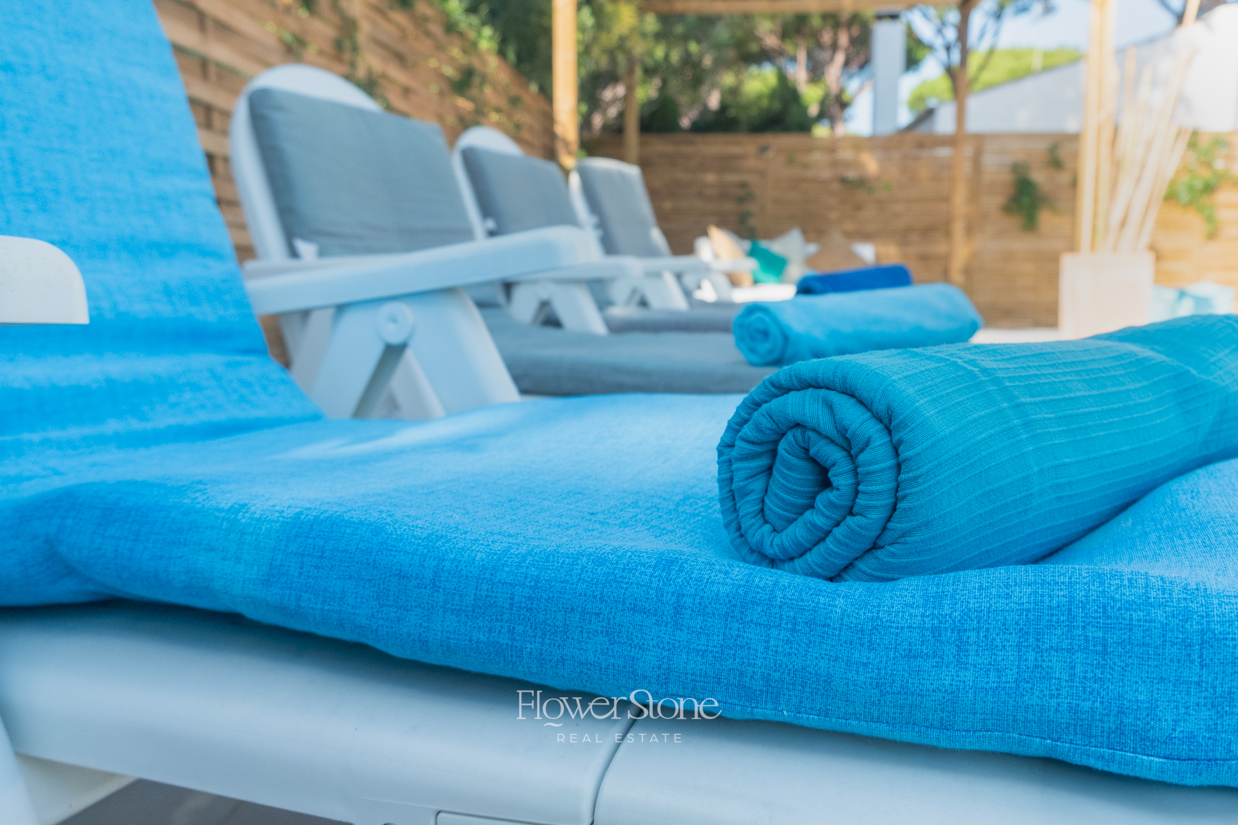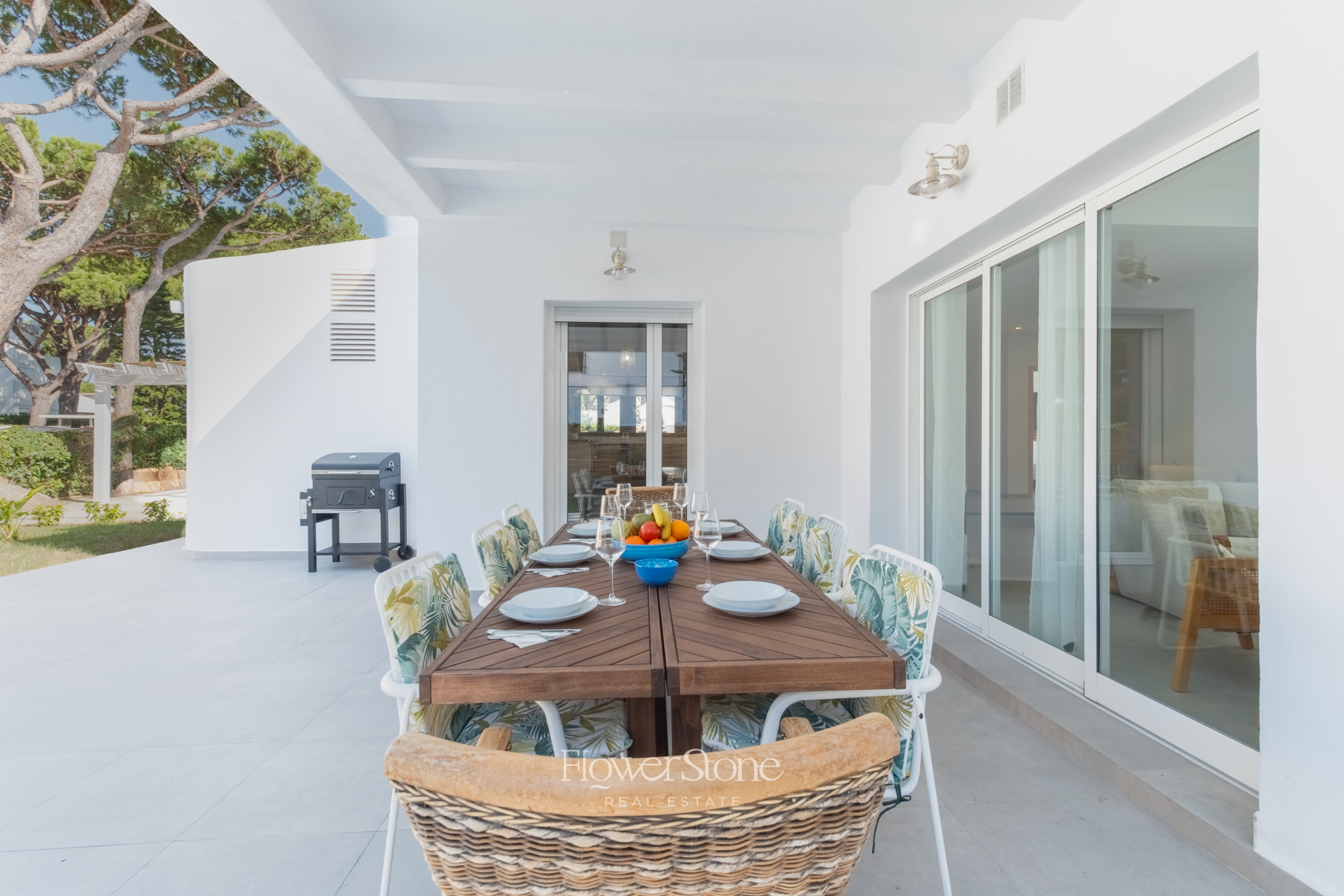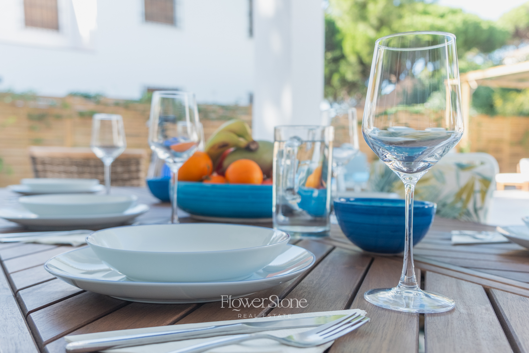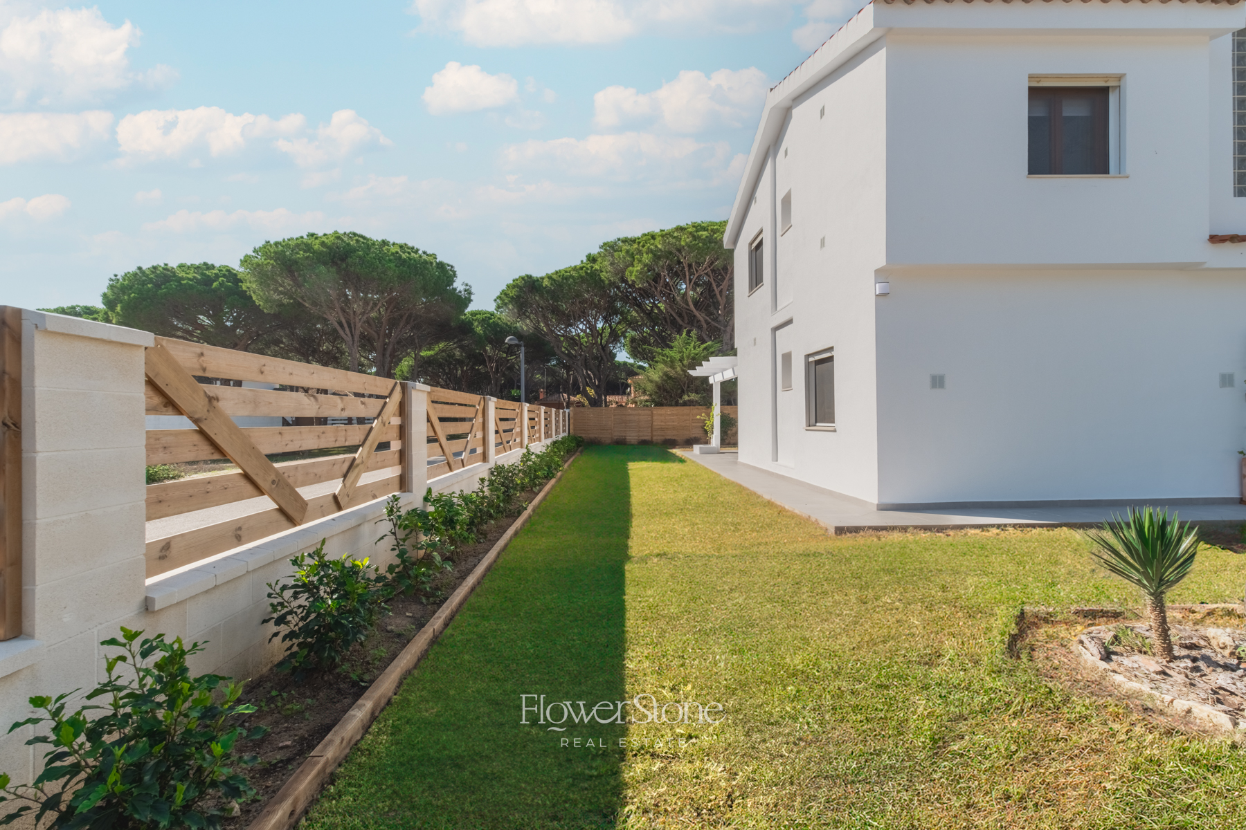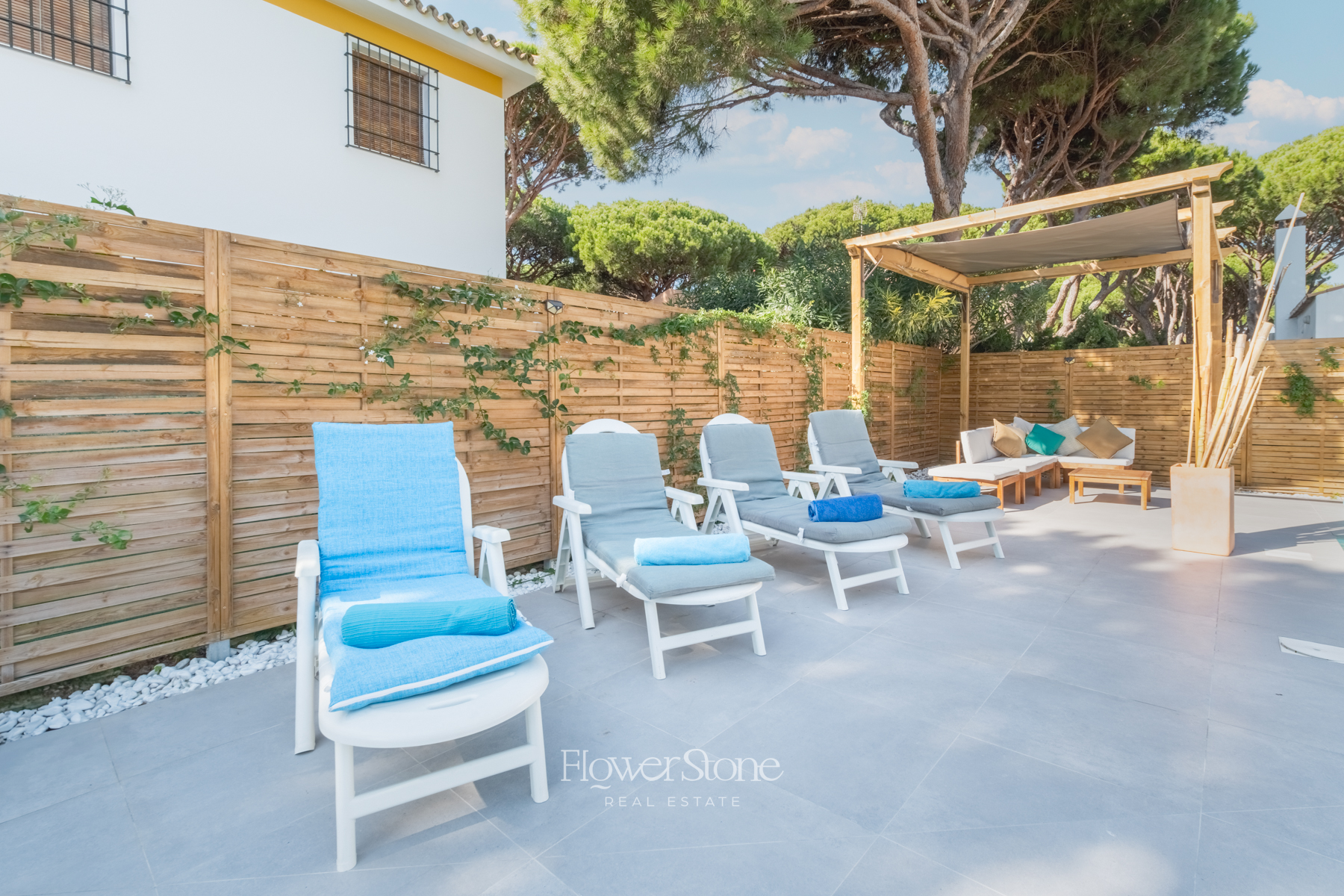 En el exterior, disfrutarás de un amplio jardín con piscina privada, porche con muebles de exterior y barbacoa. Roche ofrece además áreas deportivas, una escuela de surf en la playa y opciones gastronómicas cercanas. Para los amantes del golf, hay campos a pocos minutos.