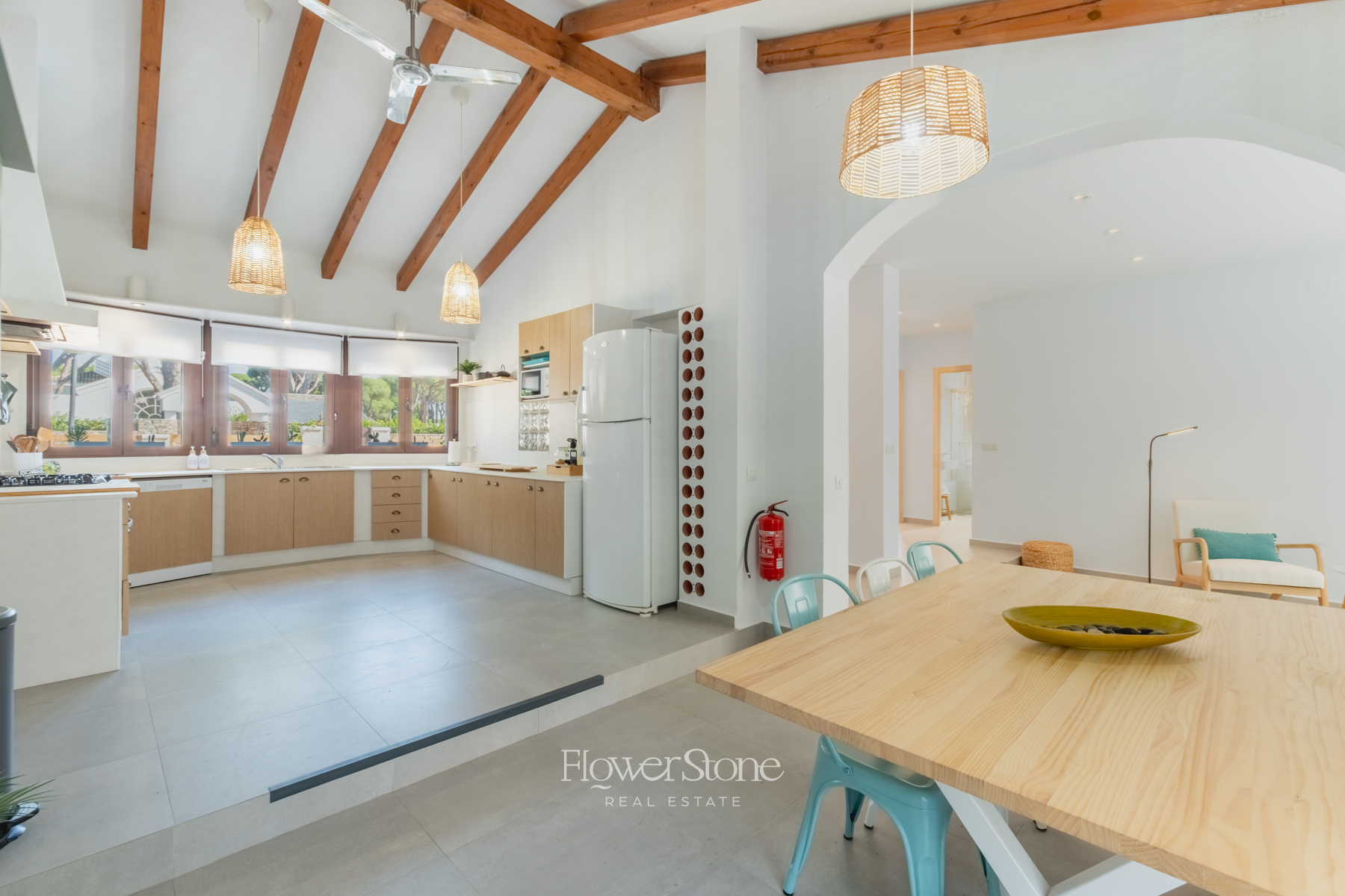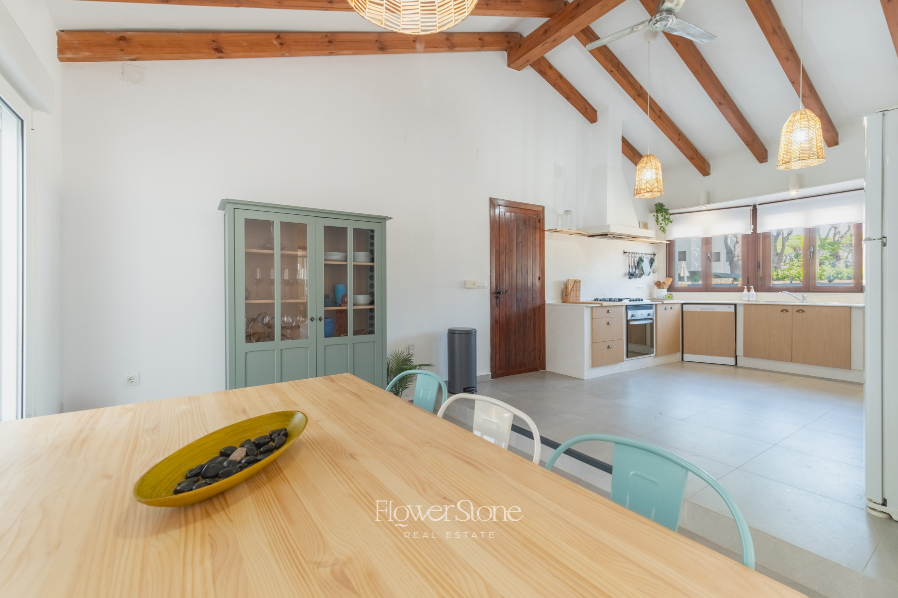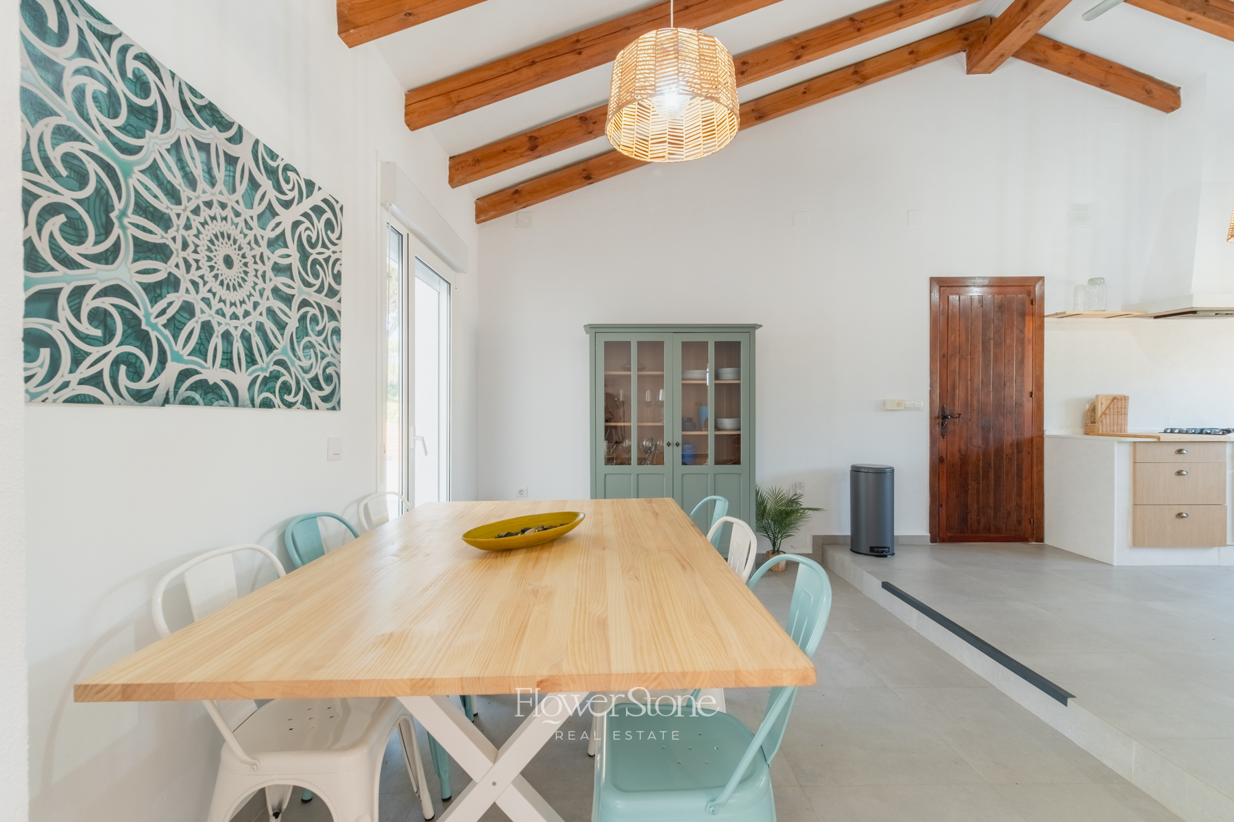 La villa tiene capacidad para 10 personas, con cinco amplios dormitorios y 2 baños completos. El salón cuenta con chimenea para momentos acogedores, y la cocina y comedor abiertos invitan a compartir comidas en un ambiente cómodo. Aire acondicionado en el salón y ventiladores de techo en todos los dormitorios.