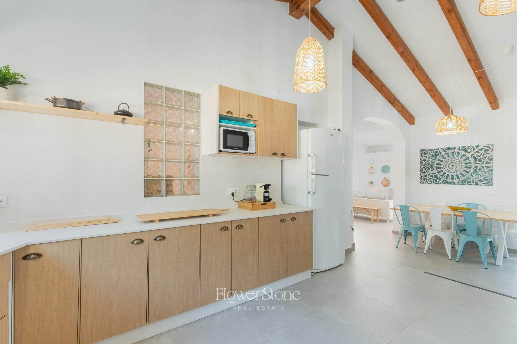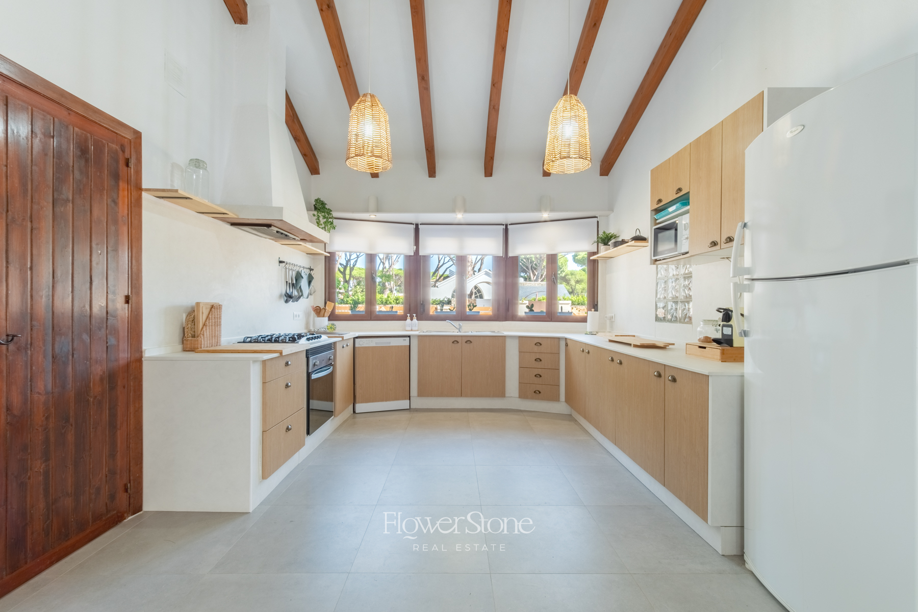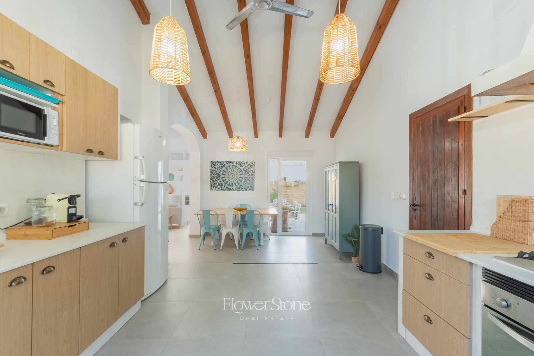 La villa tiene capacidad para 10 personas, con cinco amplios dormitorios y 2 baños completos. El salón cuenta con chimenea para momentos acogedores, y la cocina y comedor abiertos invitan a compartir comidas en un ambiente cómodo. Aire acondicionado en el salón y ventiladores de techo en todos los dormitorios.