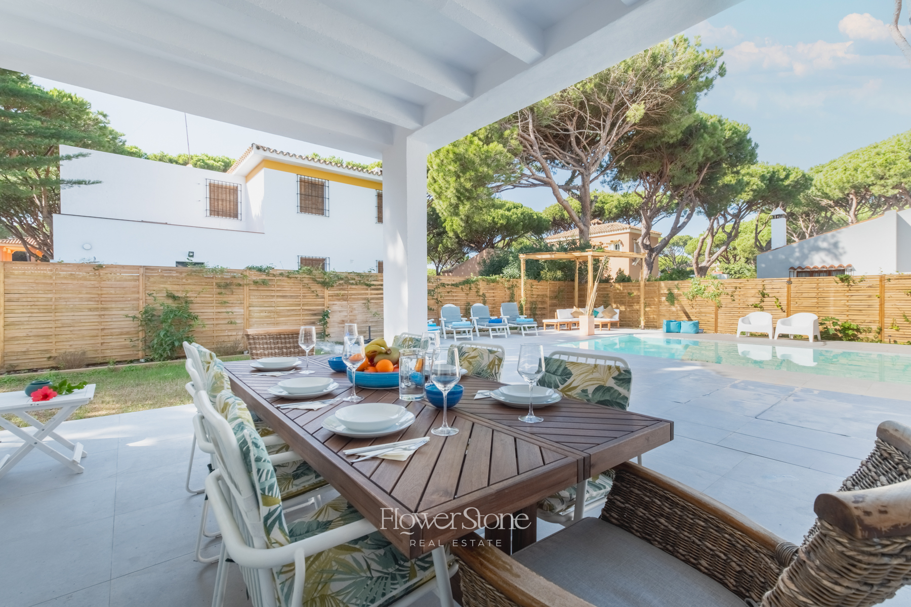 Villa España II es una lujosa villa en la exclusiva urbanización de Roche, en Conil de la Frontera, Cádiz. Este refugio en la Costa de la Luz ofrece una de las mejores playas de arenas doradas, un entorno ideal para vacaciones familiares o con amigos.
