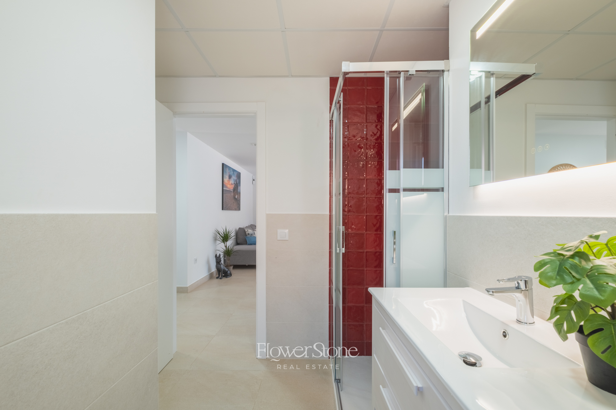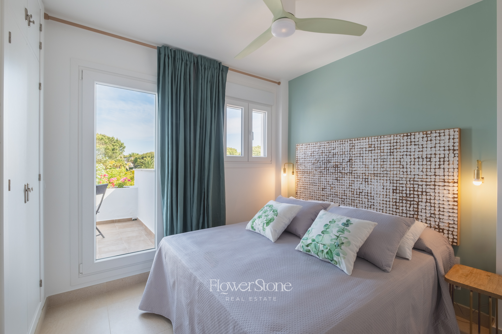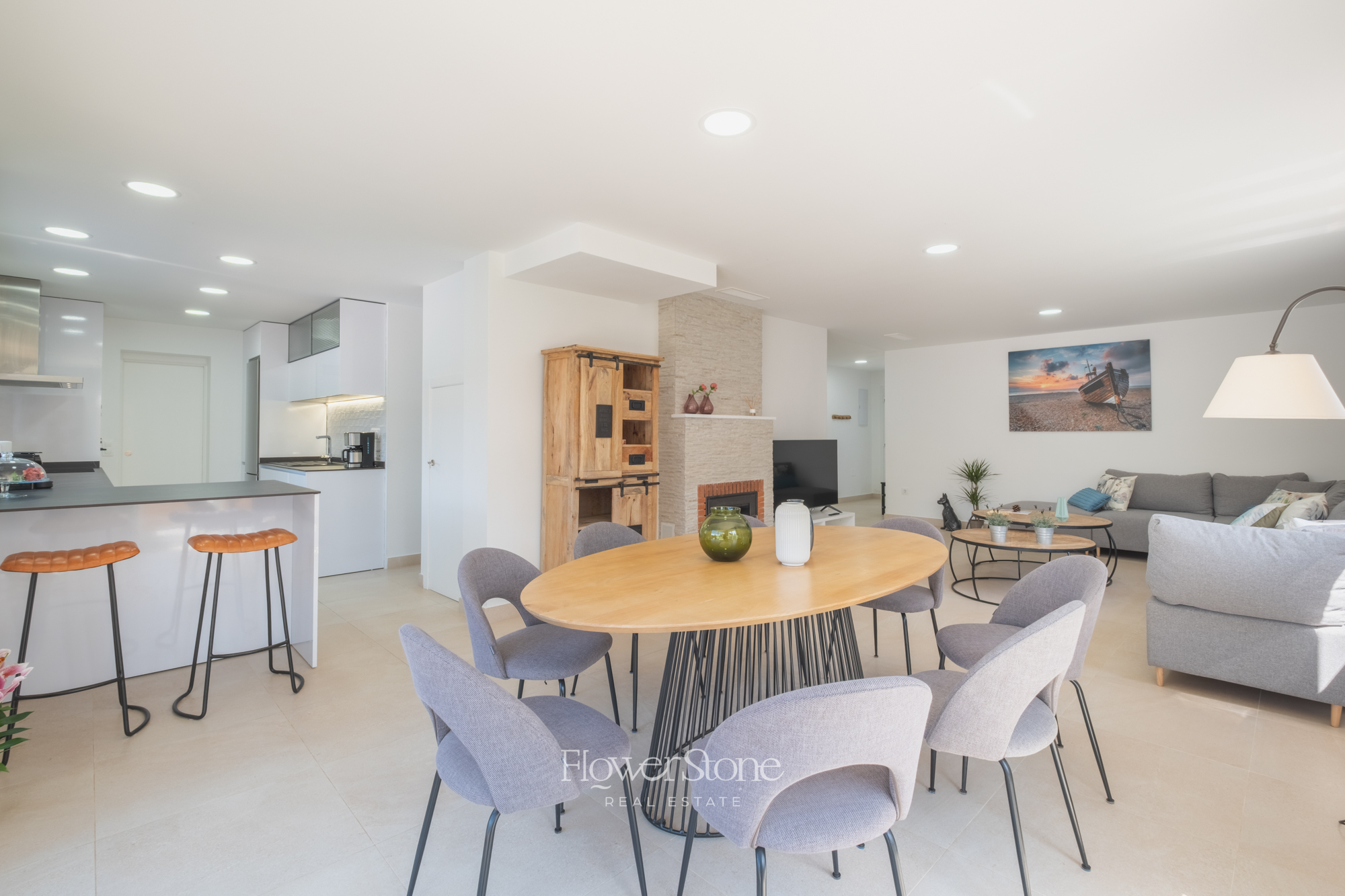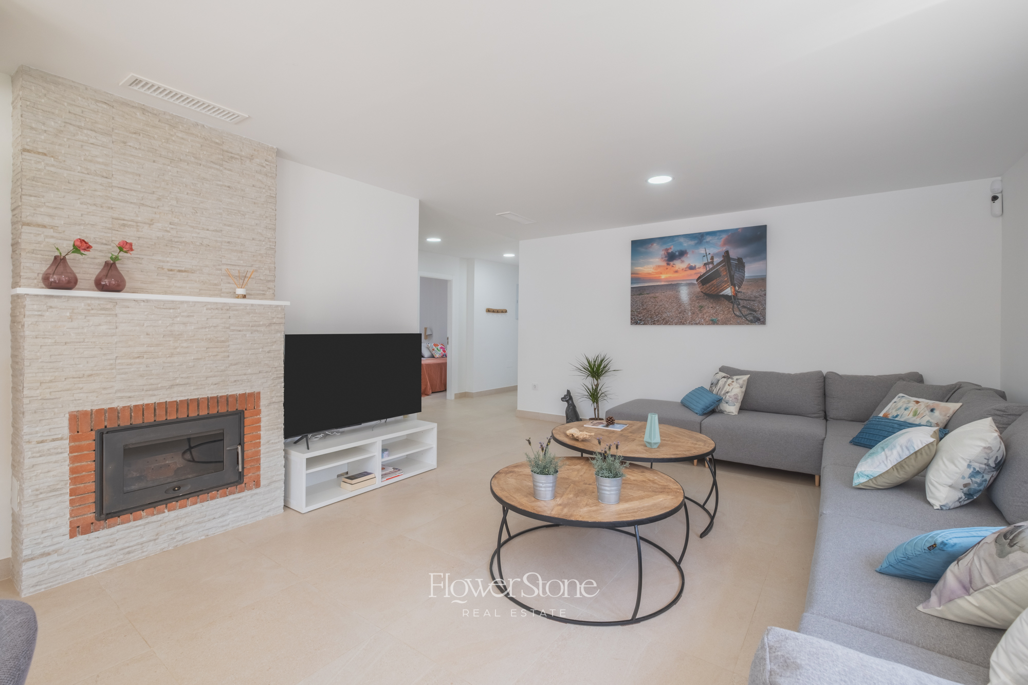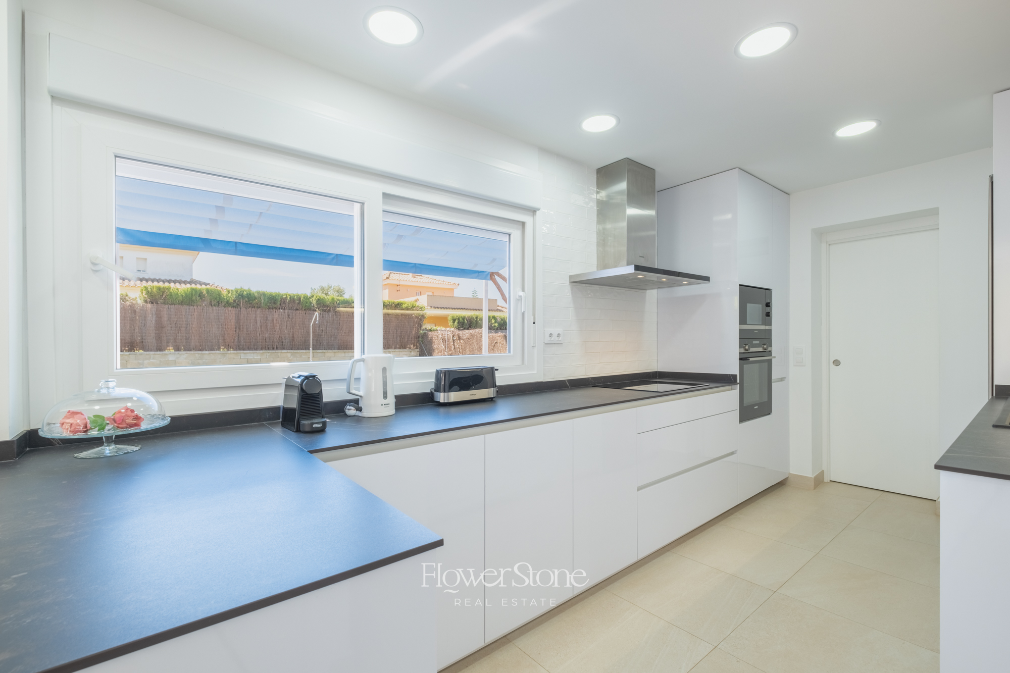 El exterior es uno de los grandes atractivos de la villa: un amplio jardín con piscina privada, ducha exterior y un porche amueblado perfecto para relajarse al aire libre. La climatización está garantizada con aire acondicionado y calefacción centralizados en la planta baja, y splits individuales en cada dormitorio de la planta alta.