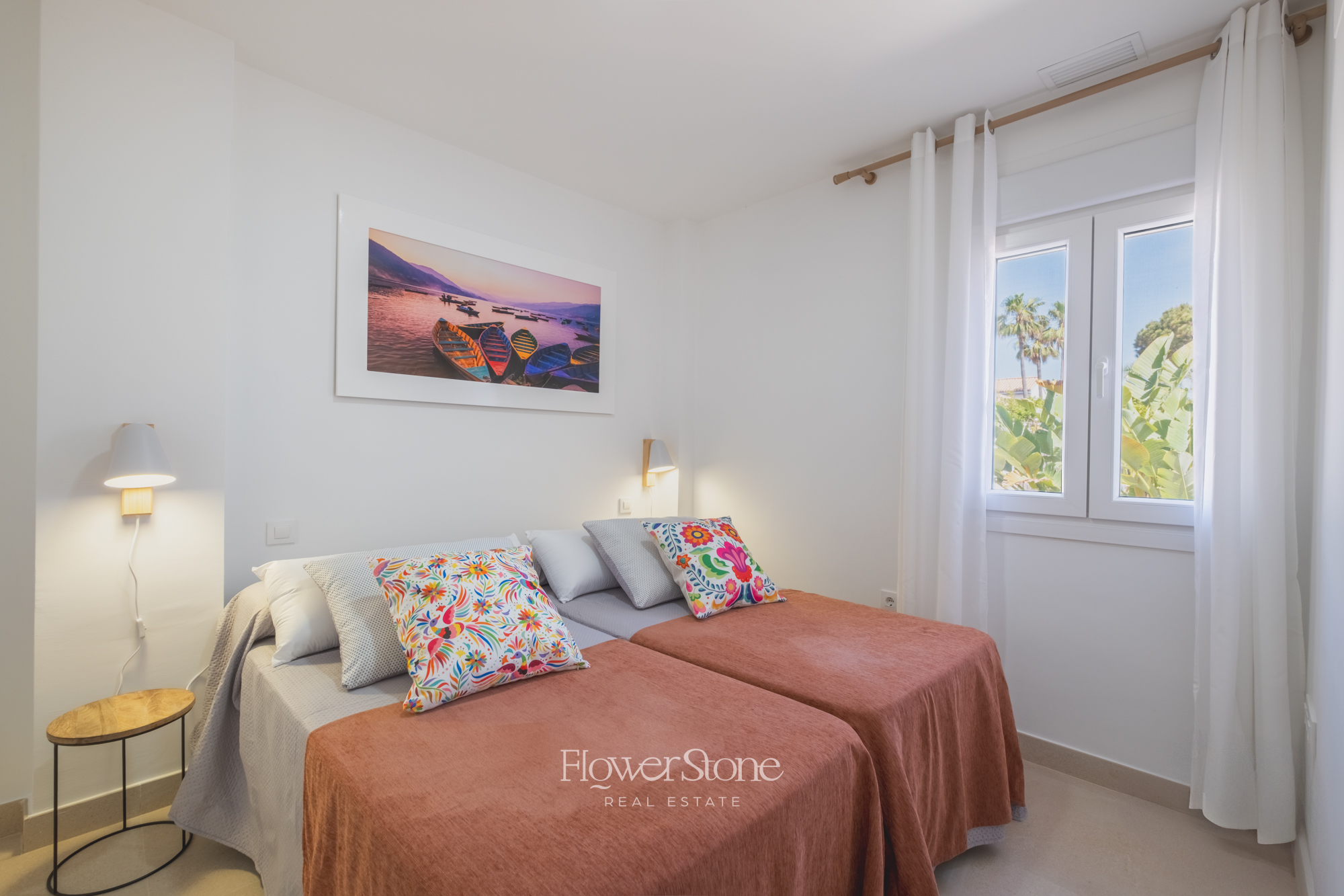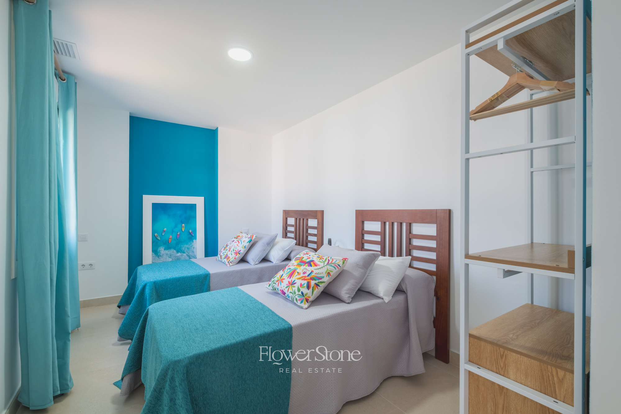 En la planta alta, se ubican dos dormitorios más, ambos con baño en suite. Uno de ellos con dos camas de 90 cm unidas como cama de 180 cm, y el otro con dos camas de 80 cm formando una cama de 160 cm. Todos los baños están completamente equipados y tres de ellos incluyen secador de pelo.