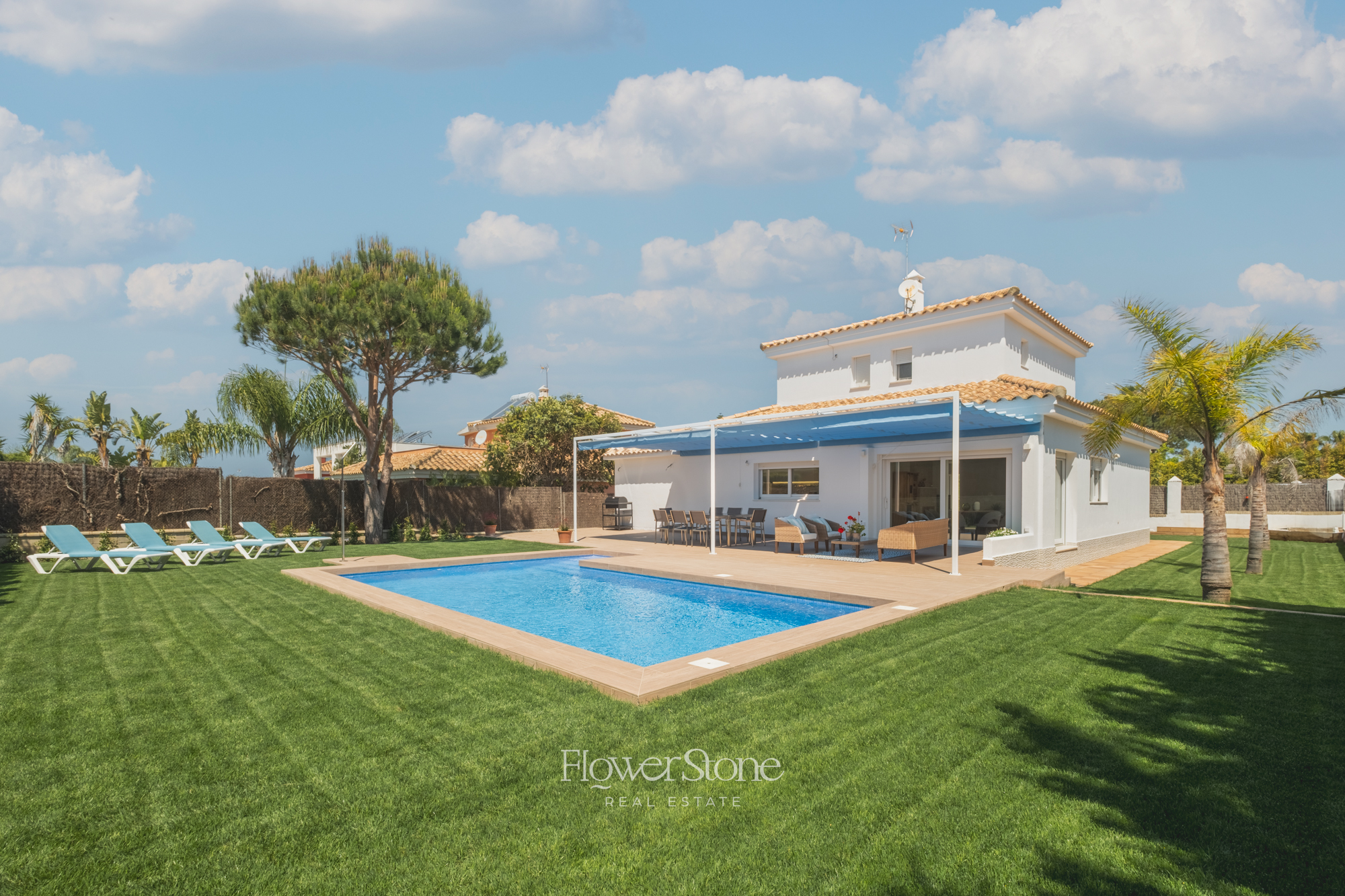 Descubre esta elegante villa de dos plantas con piscina privada, situada en una de las zonas más exclusivas de la Costa de la Luz: la urbanización de Roche. Ubicada en una parcela de 700 m² y con 200 m² construidos, esta propiedad combina comodidad, privacidad y cercanía a una de las mejores playas de Andalucía, a solo cinco minutos a pie.