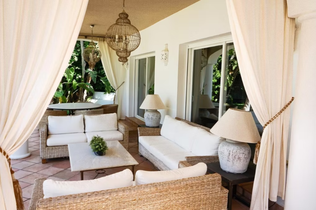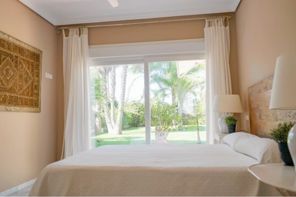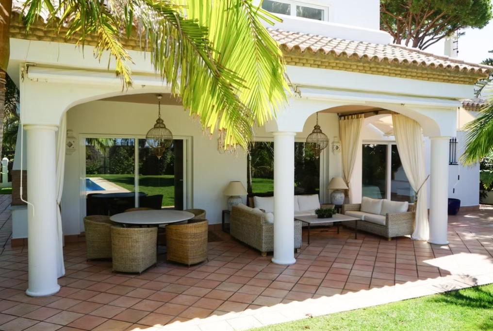 El exterior es uno de los grandes atractivos de la villa: un amplio jardín con piscina privada, ducha exterior y un porche amueblado perfecto para relajarse al aire libre. La climatización está garantizada con aire acondicionado y calefacción centralizados en la planta baja, y splits individuales en cada dormitorio de la planta alta.