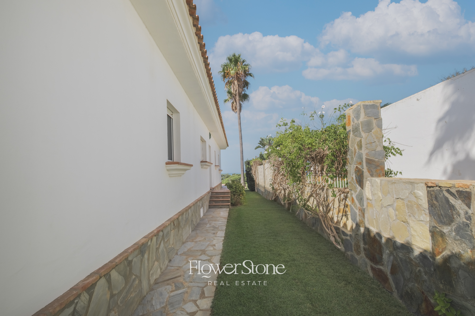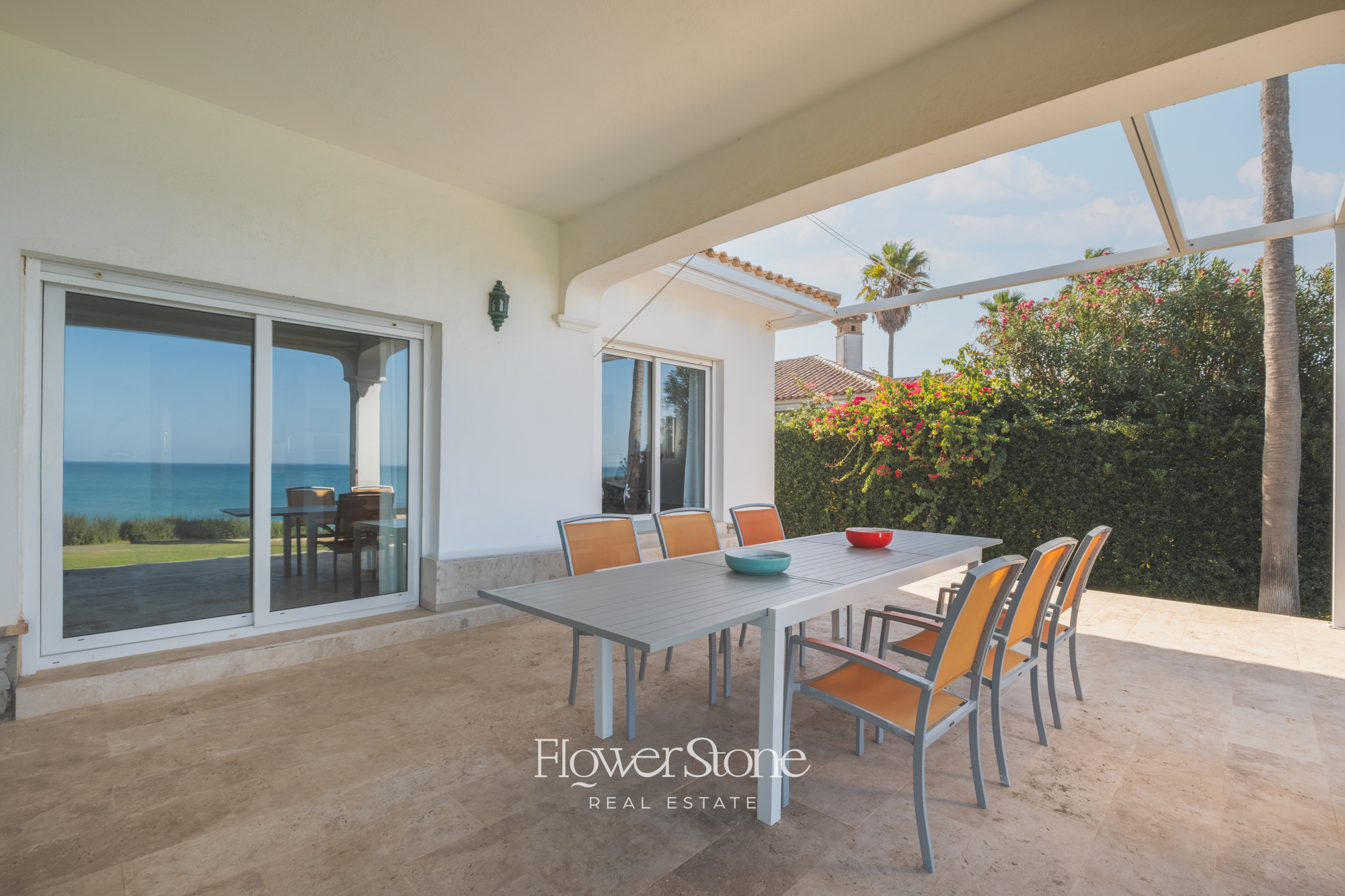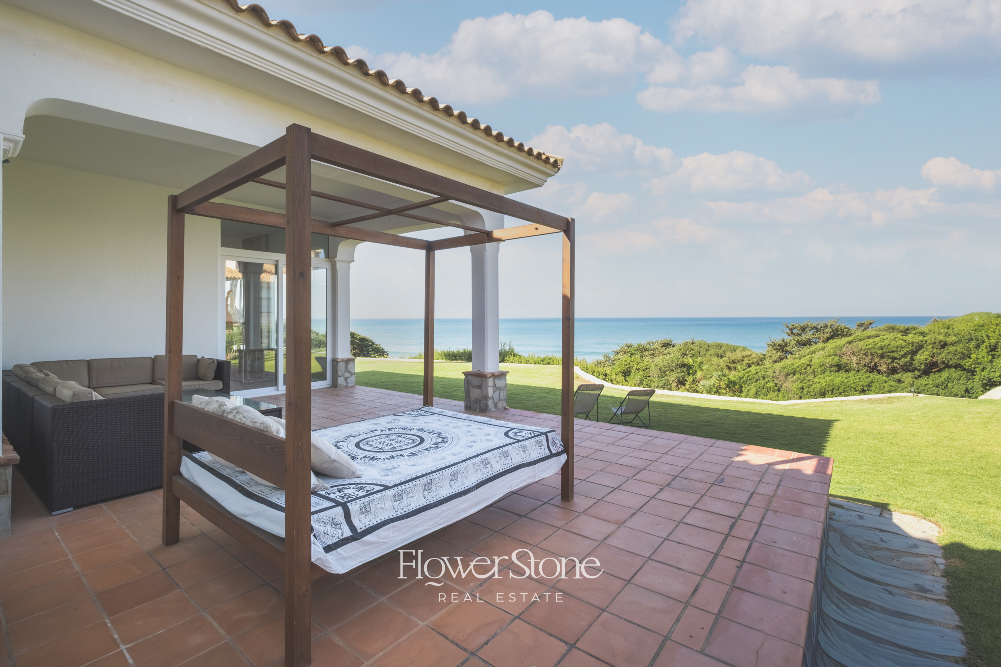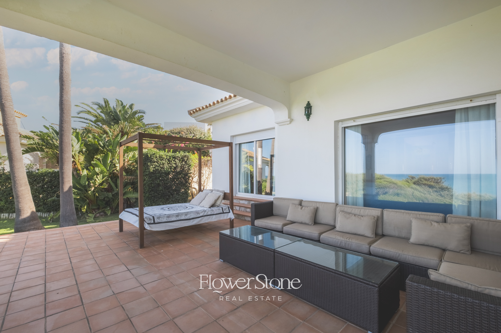 En el exterior, Villa Suecia despliega su mayor encanto: un extenso jardín con un porche amueblado ideal para cenas al aire libre y un tradicional patio andaluz que invita al relax. Todo ello acompañado de un acceso privado a la playa y unas espectaculares vistas al Atlántico que convierten cada momento en inolvidable.