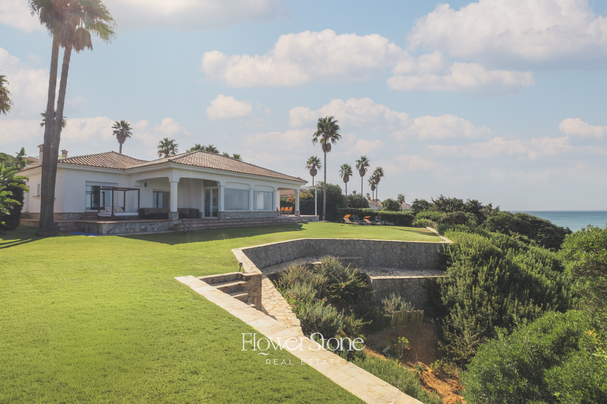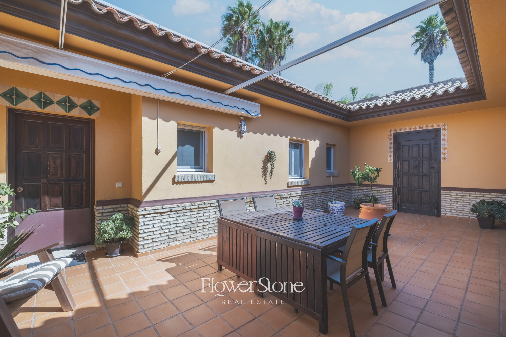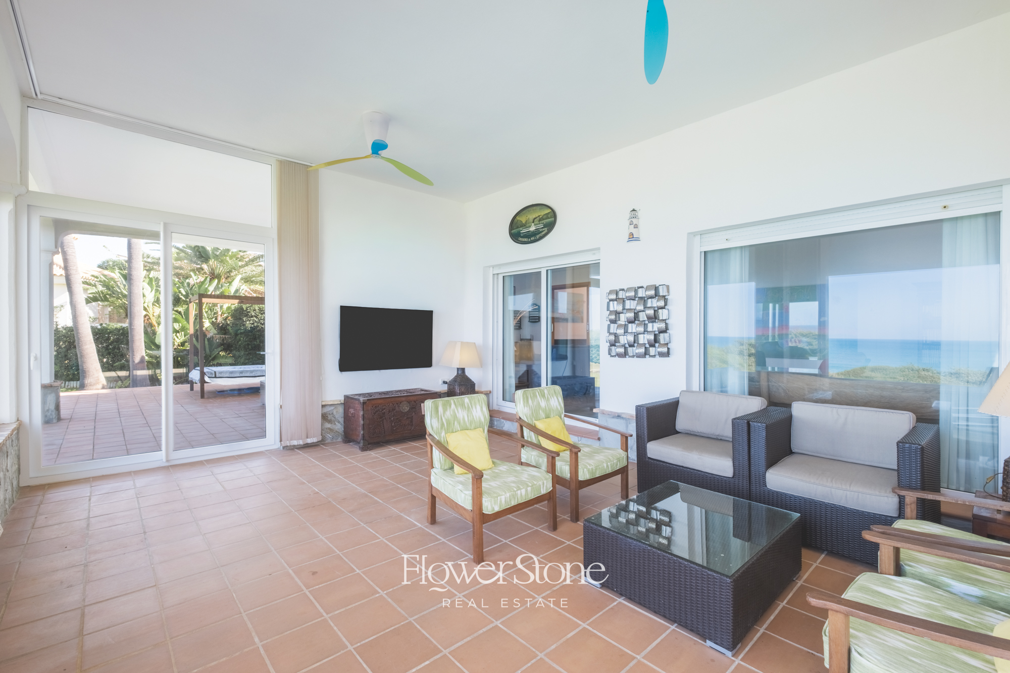 En el exterior, Villa Suecia despliega su mayor encanto: un extenso jardín con un porche amueblado ideal para cenas al aire libre y un tradicional patio andaluz que invita al relax. Todo ello acompañado de un acceso privado a la playa y unas espectaculares vistas al Atlántico que convierten cada momento en inolvidable.