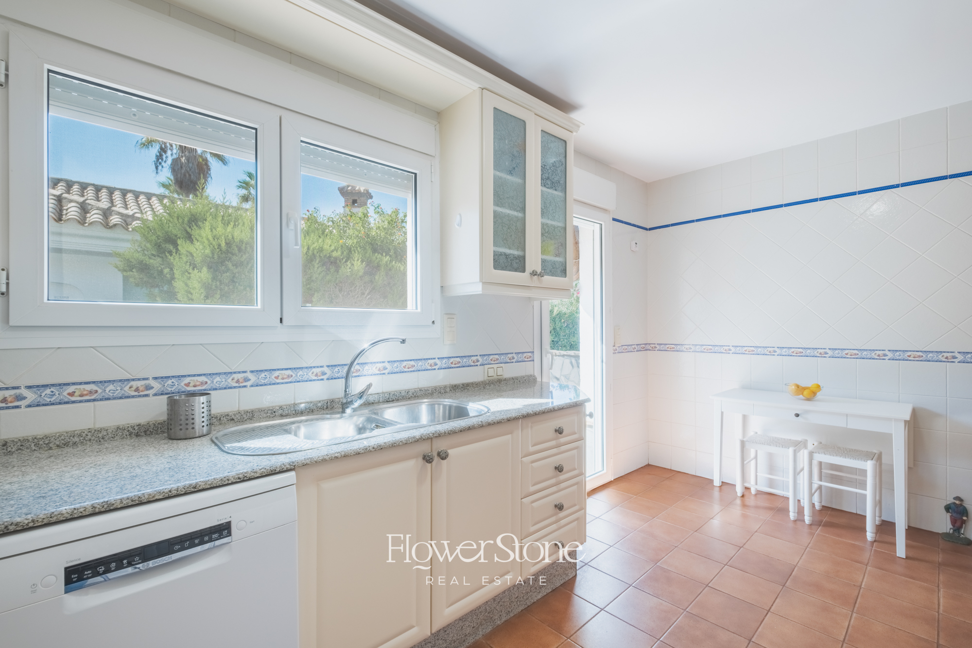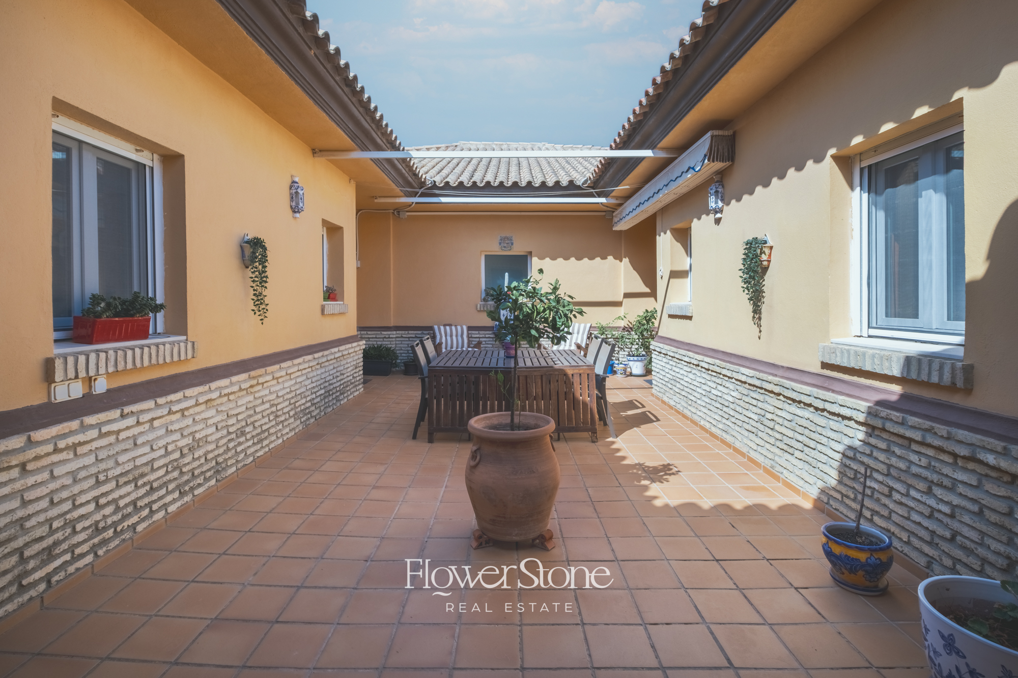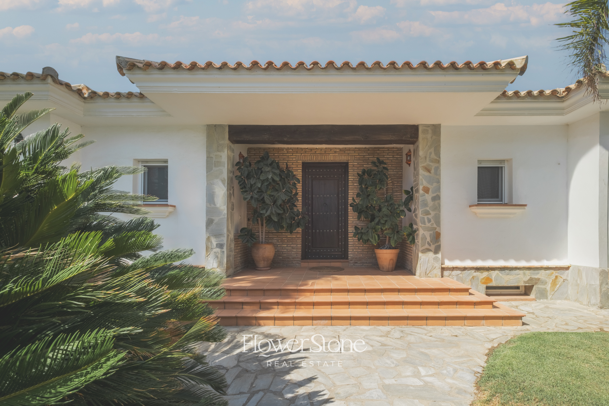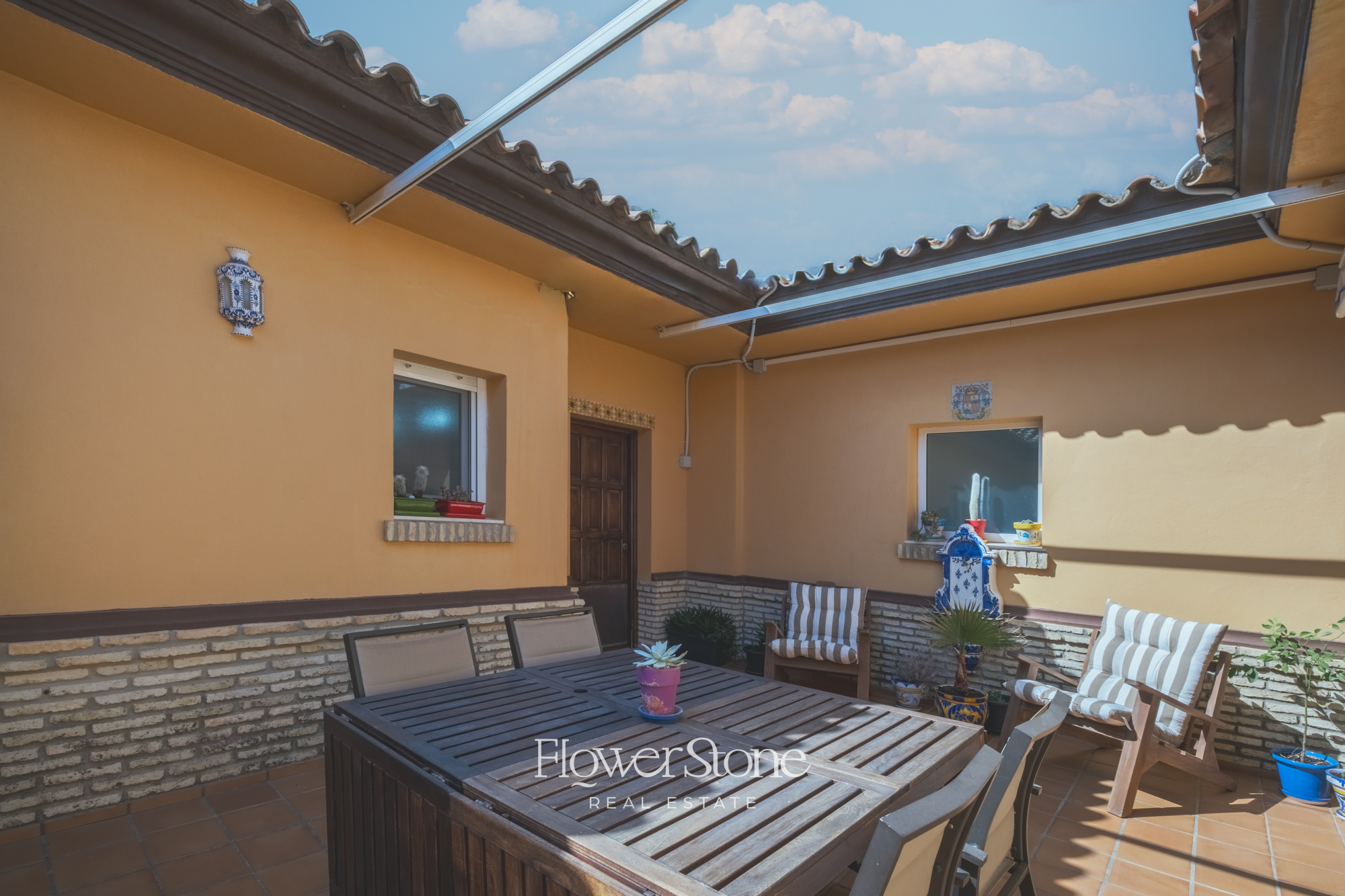 En el exterior, Villa Suecia despliega su mayor encanto: un extenso jardín con un porche amueblado ideal para cenas al aire libre y un tradicional patio andaluz que invita al relax. Todo ello acompañado de un acceso privado a la playa y unas espectaculares vistas al Atlántico que convierten cada momento en inolvidable.