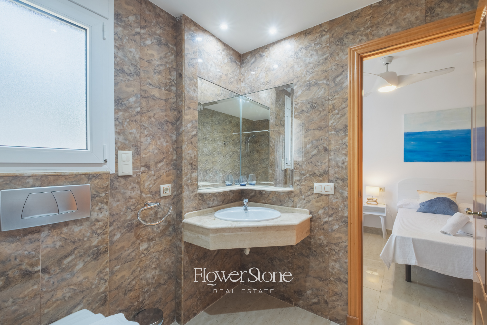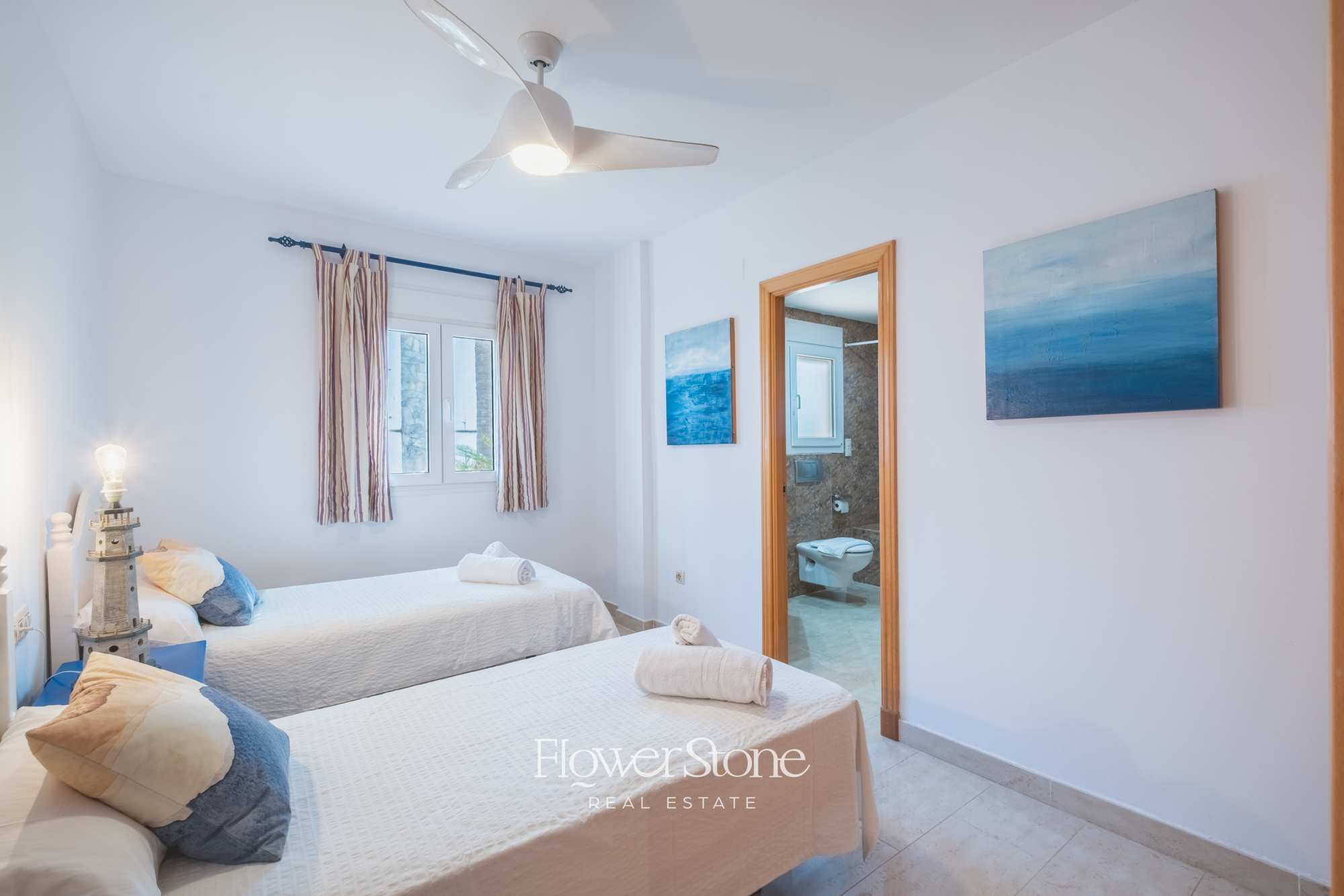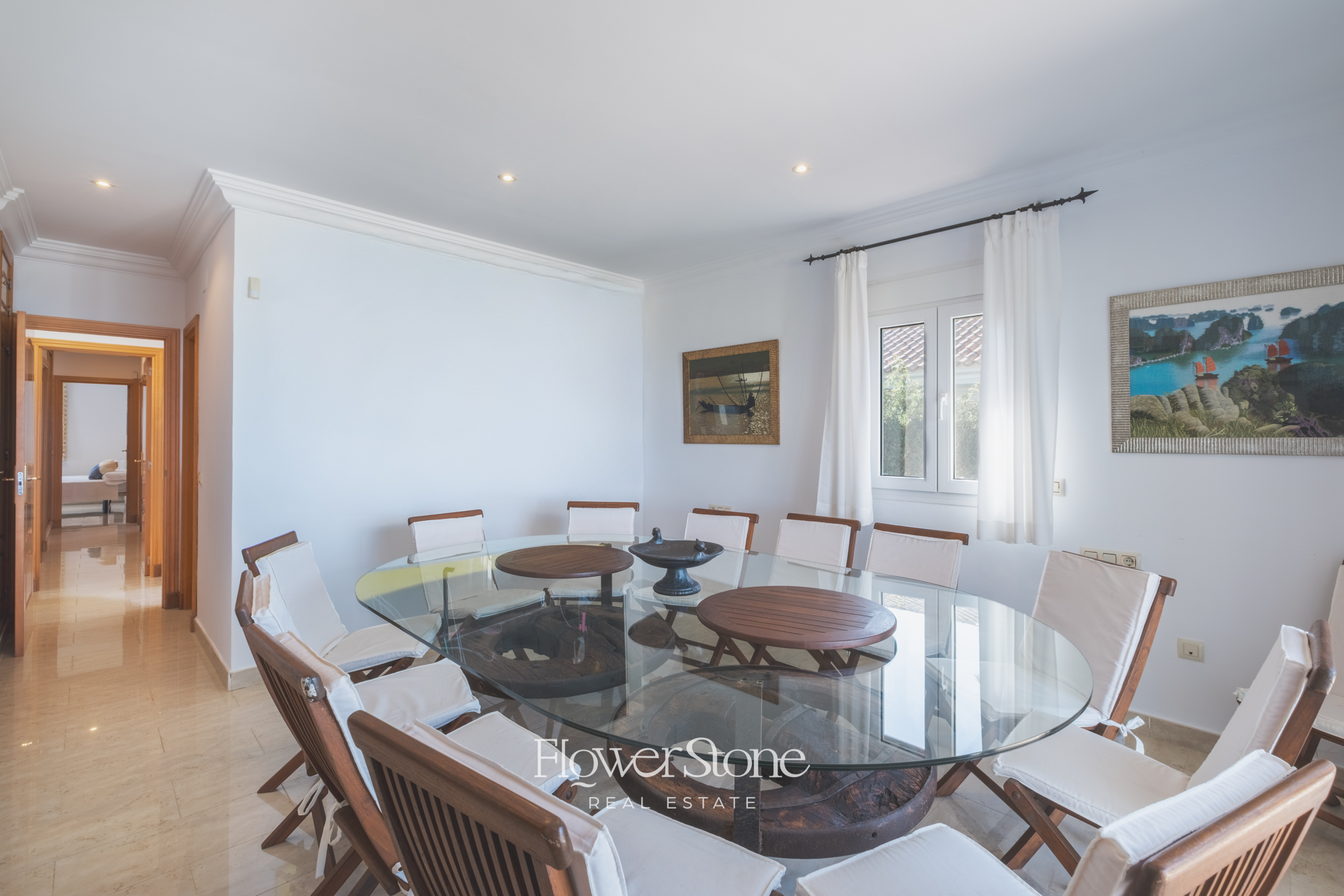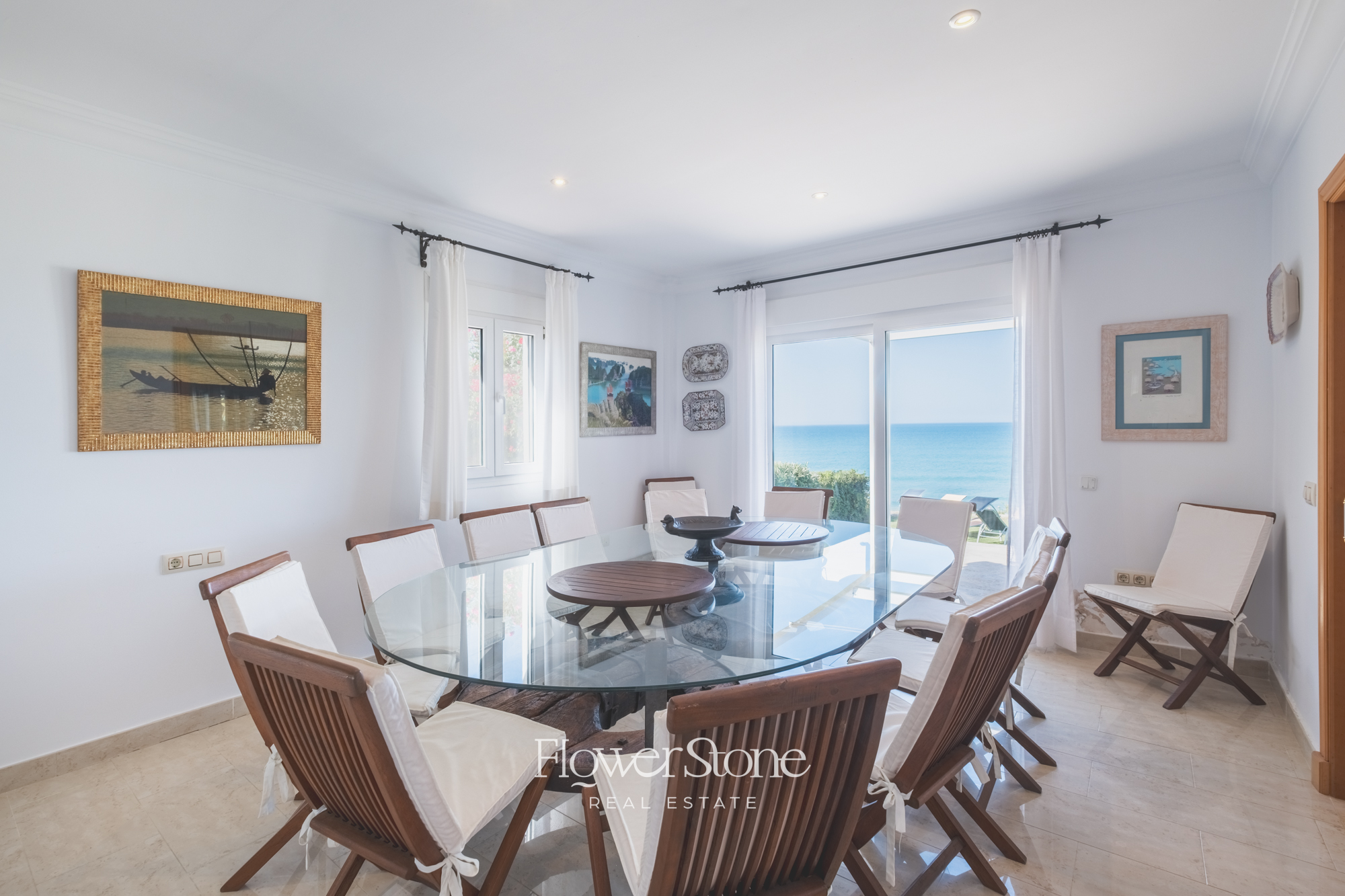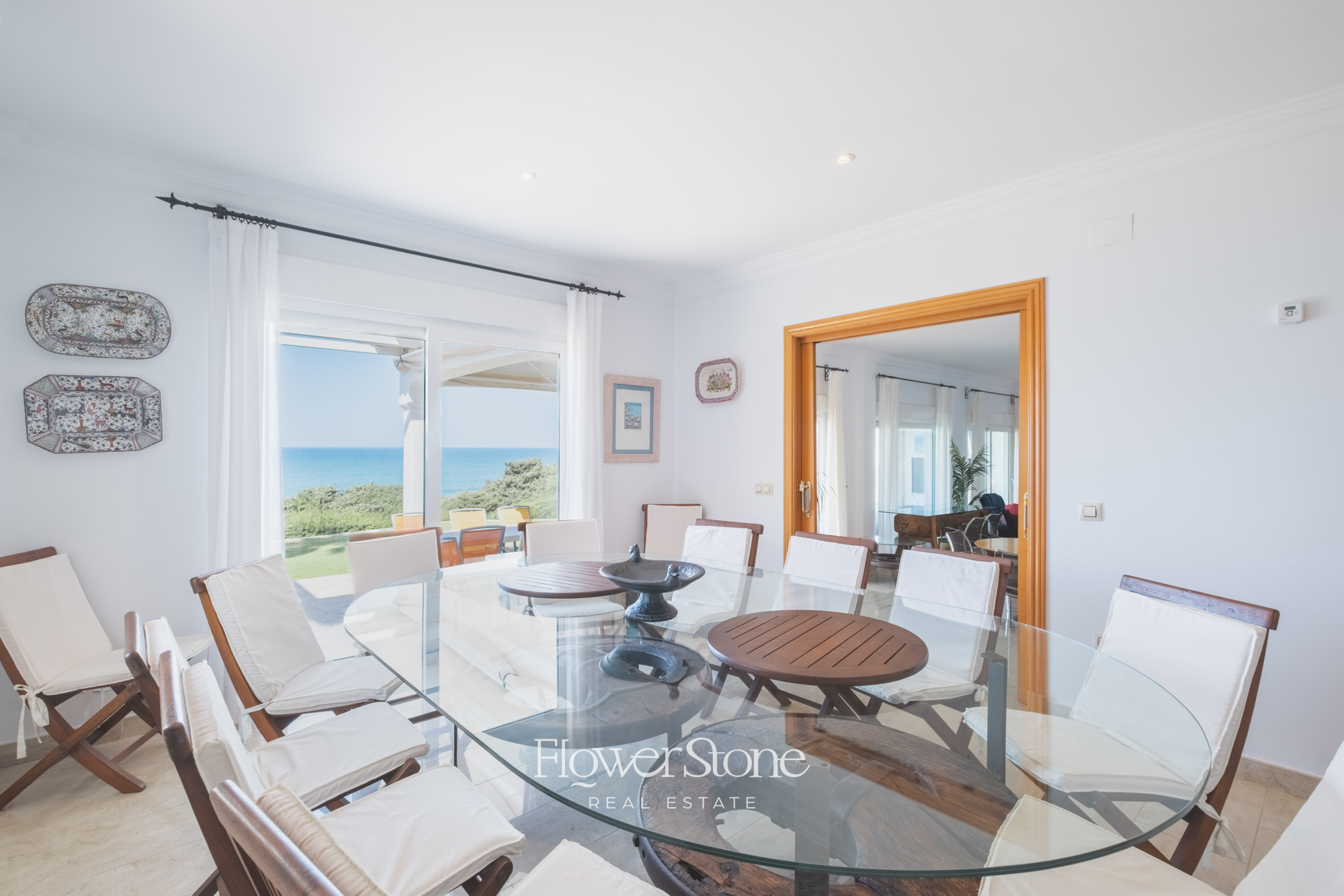 Con capacidad para hasta 14 huéspedes, la villa dispone de 7 dormitorios amplios, cada uno con baño en suite, además de dos aseos adicionales. Distribuida en una sola planta, su diseño garantiza comodidad y accesibilidad para todos. El luminoso salón comedor con vistas al mar y la cocina completamente equipada hacen de cada estancia una experiencia acogedora y funcional.